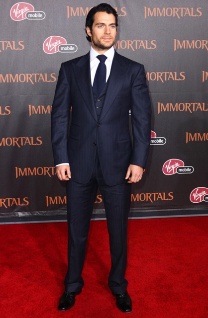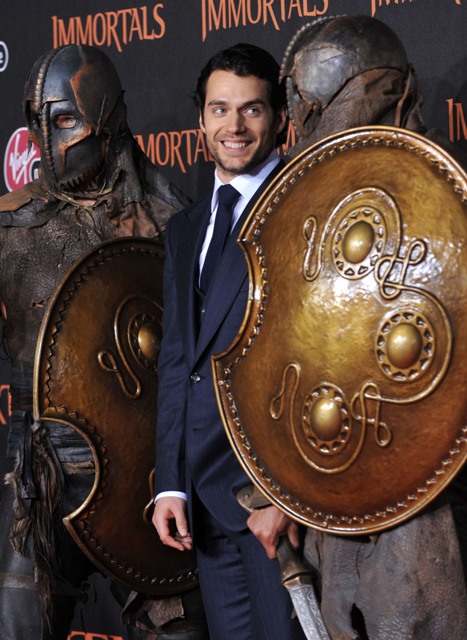 Here’s Henry at the Immortals premiere last night in Hollywood. So it’s going up against Adam Sandler’s Jack & Jill and Clint Eastwood’s J Edgar with Leonardo DiCaprio. Very curious to see what the numbers will be. Like a starter course for Henry before the major pressure. Superman, have you heard? Man of Steel won’t be in theatres until June 2013. I wonder if that’s so we have enough time to cleanse ourselves from Immortals. What am I talking about? Look at this trailer. This is what people pay to see at the movies now.