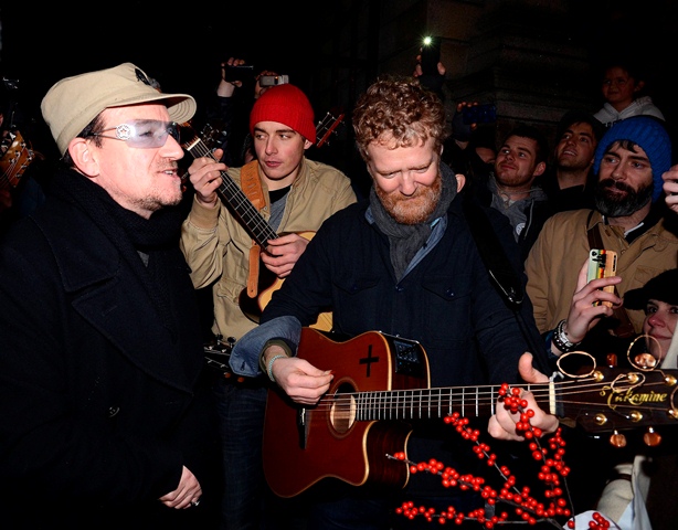 Wouldn’t it have been great to have been in Ireland, at the entrance to St Stephen’s Park in Dublin, to see Bono and Glen Hansard busking for charity on Christmas Eve?