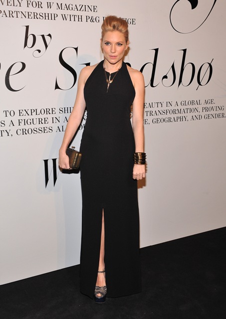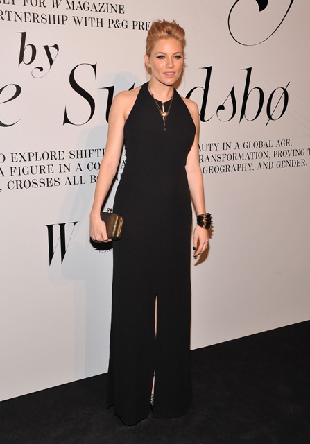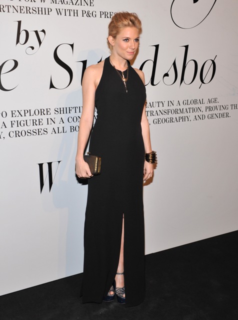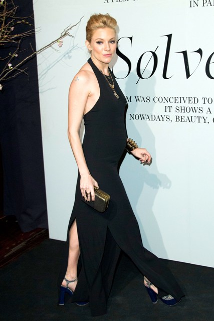 These are the first shots of Sienna Miller on a red carpet since Us Weekly was the first to report she’s pregnant. Far as I know, Sienna never confirmed it officially but there can’t be any doubt now. Sienna was in New York last night for a fashion event, and there it is, unmistakeably, Sienna Miller + Tom Sturridge, growing. And lovely. She looks like Naomi Watts a little in these photos, non?