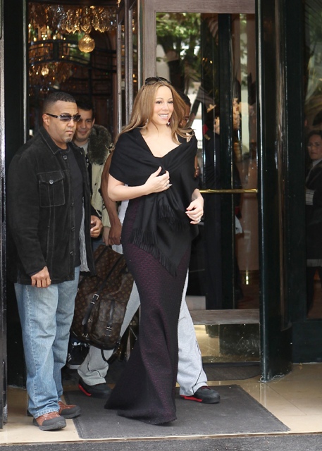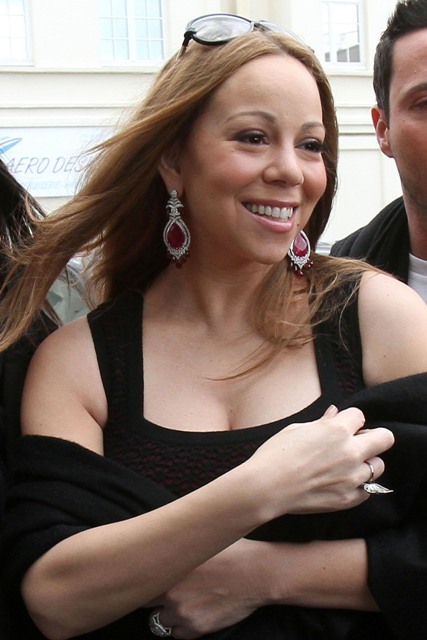 On Sunday Mimi and the entourage packed up for Austria which is where she's spending her anniversary proper, singing at some ski resort. Think about how expensive it is when you go on a modest family holiday. Now think about how much pricier that becomes if you have to travel by Mimi's standards. Then, on top of that, consider that she and Nick don't travel alone. There are nannies now and hair and makeup people and dressers and handholders and bodyguards and butterfly keepers and Mimi goes nowhere without them. The goal then is to get someone else to pay for all of it. When you deal with Mimi, you deal with all the sh-t she comes with. You can imagine then the cost that would have been negotiated for Mimi to appear at this gig, and on her wedding anniversary no less? That probably resulted in a 10% markup, at least.