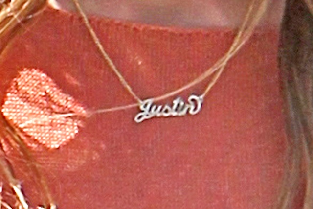 Justin around her neck