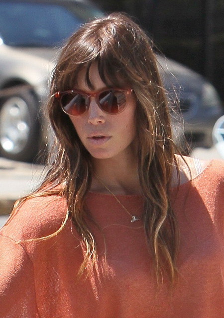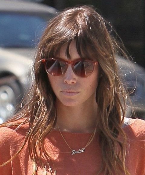 This is Jessica Biel out in West Hollywood yesterday wearing a “Justin” necklace. This of course is nowhere near as sweet and romantic as Slum Lover giving Jennifer Lopez a bear necklace for her birthday to go with her bear birthday cake. What else? A “bear2bear” tattoo? The crazy thing is...that might actually happen.