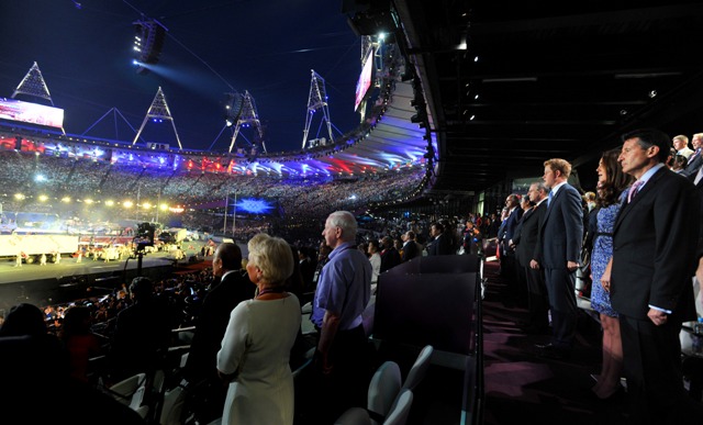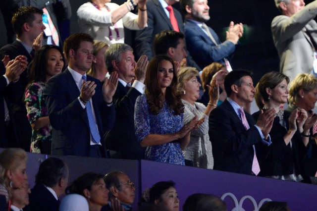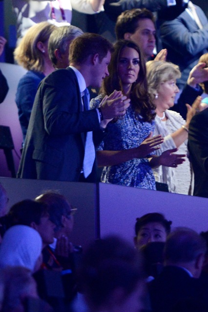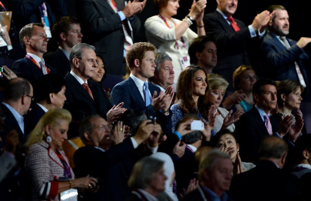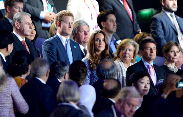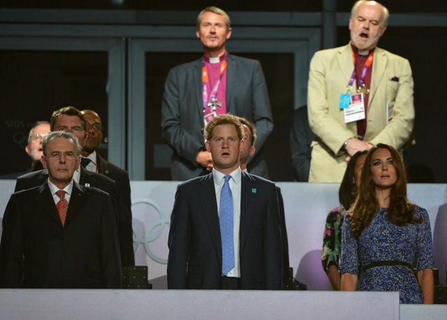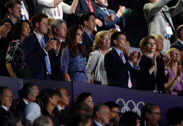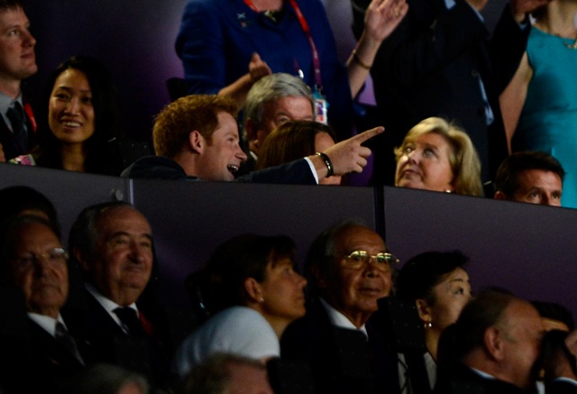 As the senior Royal representing the Family, it was a grim-faced Harry who took his place next to Jacques Rogge. I wonder if that was the instruction: we are not, ever, effusive at formal functions. And Hot Harry, especially after his first official tour earlier this year, is very much taking seriously his duties these days. I imagine it must be addictive, making Granny proud. While that responsibility usually falls to his brother, Will was at work and his dad, who enjoys speaking to plants, doesn't exactly reflect the spirit of youth that the Olympics, even in these corporate-driven times, purports to uphold.