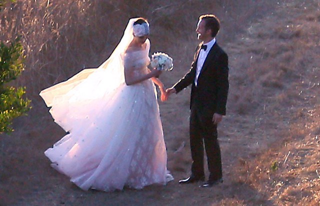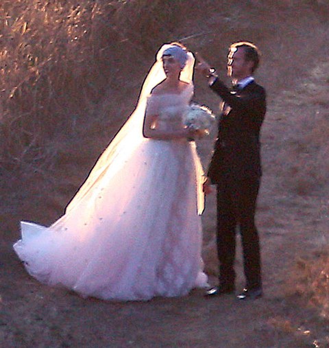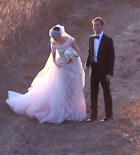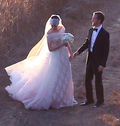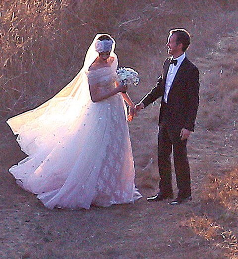 So Annie married Adam Shulman on Saturday in Big Sur. It wasn’t a super-Hollywood situation. She wore, as expected, Valentino, and while the style of the gown isn’t really my flavour, God I do love the headpiece. Look at the effect of it from the side -- SO romantic, SO elegant, right?