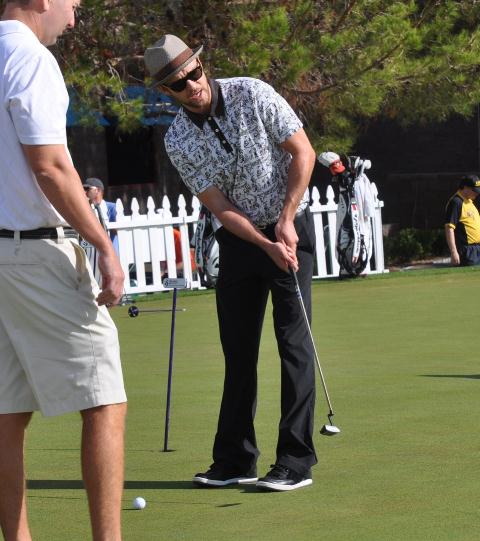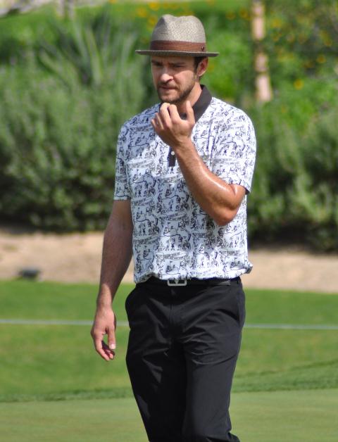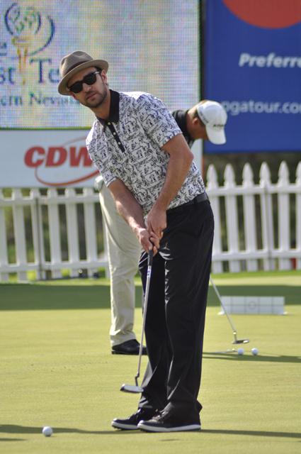 Attached - JT golfing at the Shriners in Vegas yesterday, his final tournament with the organisation. Former NSYNCer Chris Kirkpatrick was there too as one of few celebrities who attended the event (though it appears no one cared enough to photograph him). How much did it bite Justin’s ass that he had to be associated with his old boyband mate?