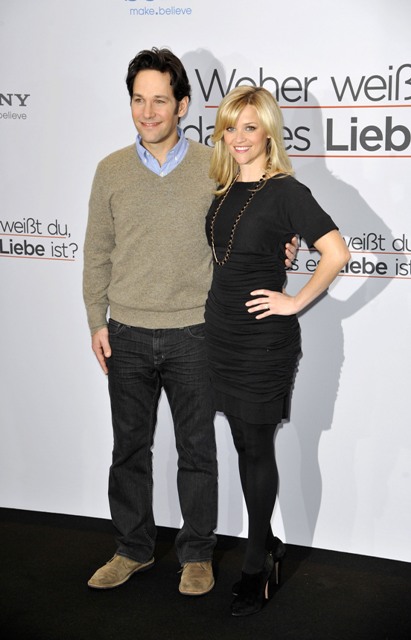 Reese Witherspoon and Paul Rudd were in Berlin this morning promoting How Do You Know. The film did not do well domestically. So it’s extra extra important to be perky and sweet and appealing to make up some cash money overseas.