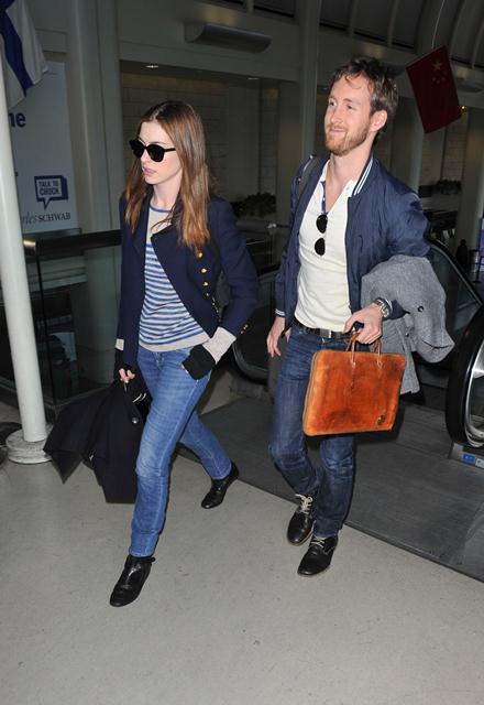 She’s getting over it. And in these photos she’s on her way, with her boyfriend Adam, to London from LAX, reasons unknown, so let me make a totally uneducated assumption and say reshoots for One Day? Maybe that’s just wishful thinking. Any attachment to the book/movie…