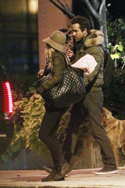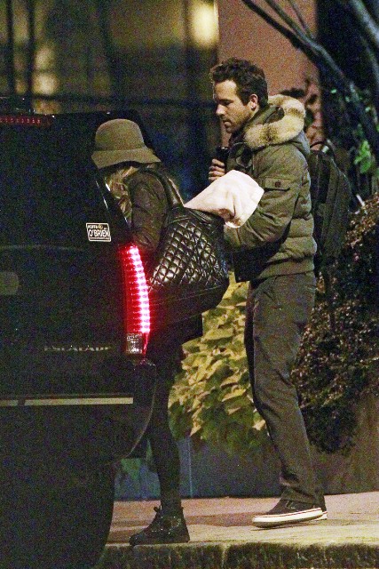 Blake Lively and Ryan Reynolds were photographed early Saturday morning leaving his Boston apartment with their dogs. The two were picked up by car service and taken to set where he’s working on RIPD. This just as Page Six reported that they were in New York last Thursday with Sandra Bullock at The Box for his 35th birthday. Blake’s rep, who is doing a really, really great job these days, found a source to tell the paper that Blake and Ryan were affectionate and coupley and holding hands. Someone else told the paper that they were accompanied by bodyguards?