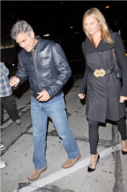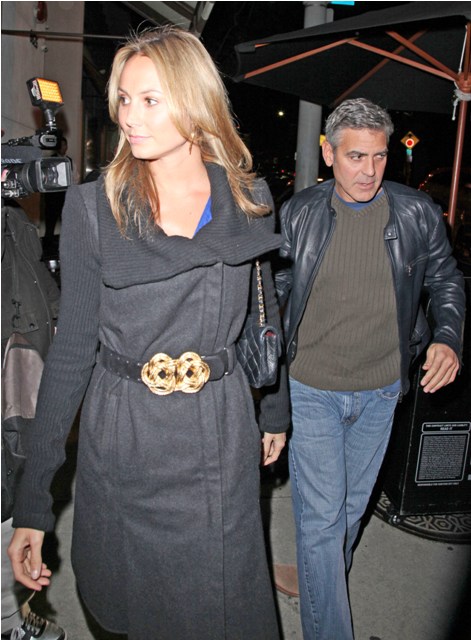 George Clooney and Stacy Keibler were out for dinner last night in LA. Every pap in the city was there to shoot them. You know what I will always love about him though, no matter how frustrated I am with his girlfriend game?