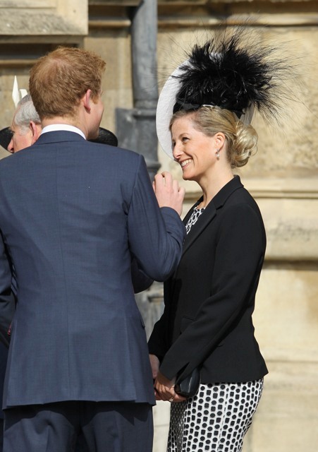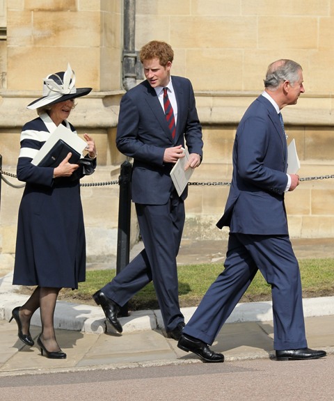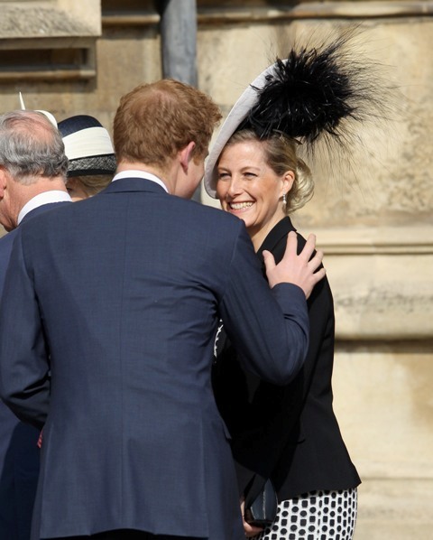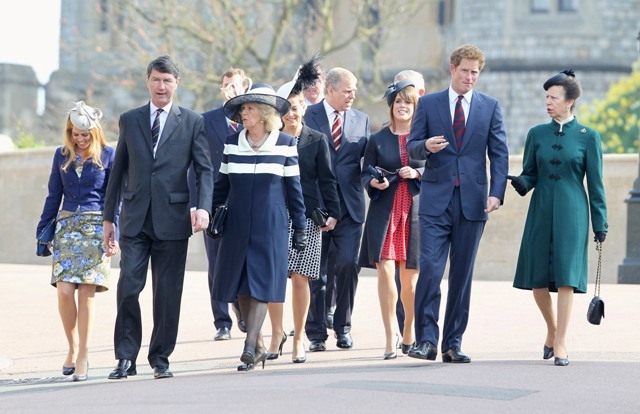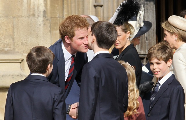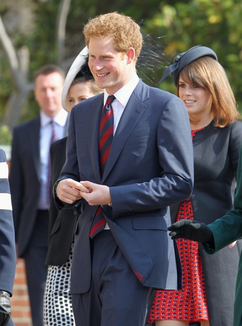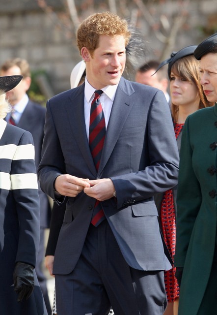 Hot Harry along with his father, his stepmother, his aunts, uncles, and cousins attended a church service today to remember his great grandmother the Queen Mother. Really, really want to know what Princess Anne is lecturing him about. Harry is rather close with Beatrice and Eugenie. I’ve always wondered when they were growing up, like in other families, whether or not there was a “kids’ table”. And if he ever snapped their bra straps.