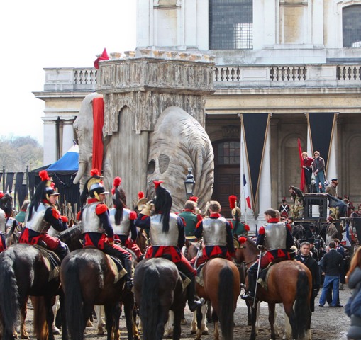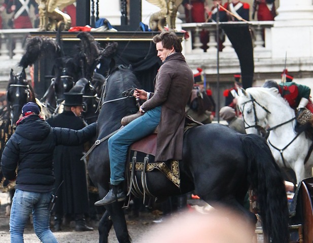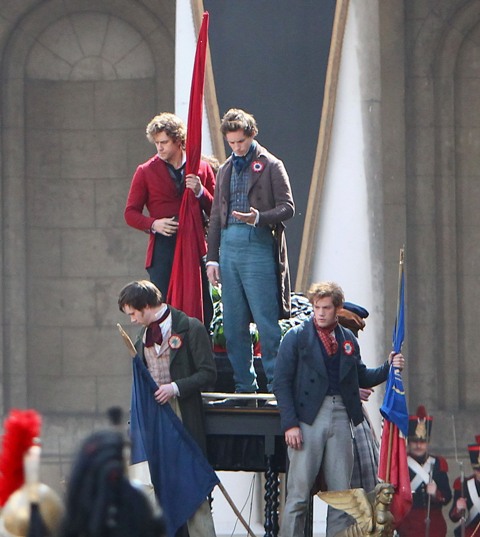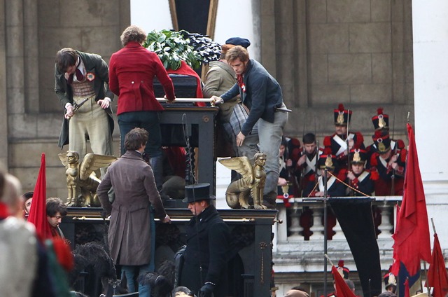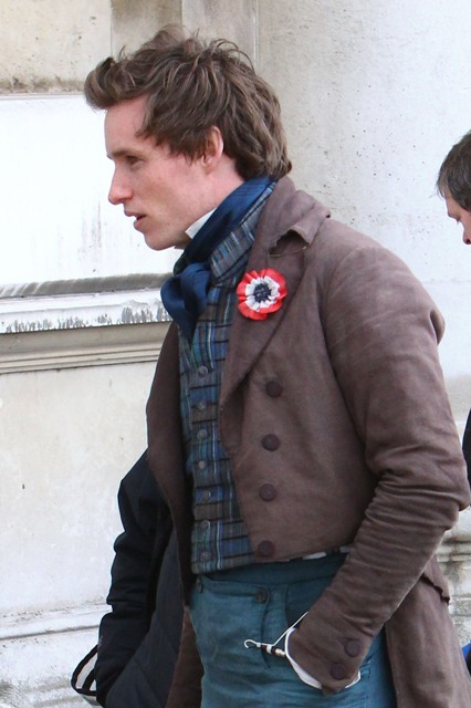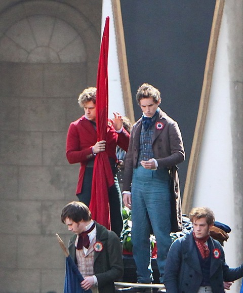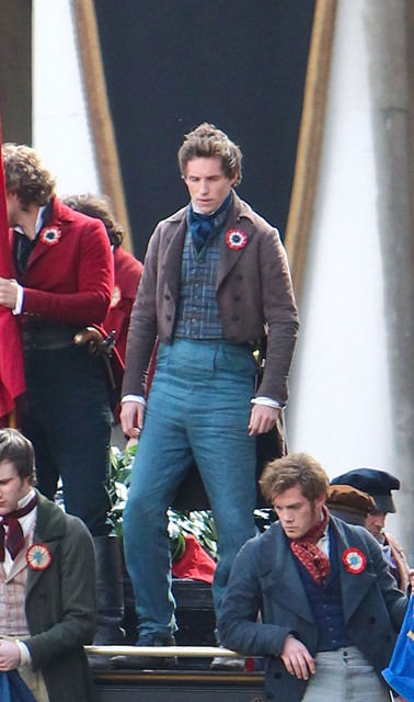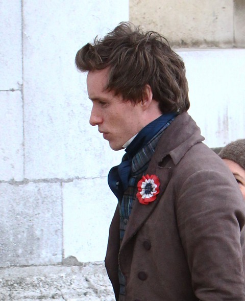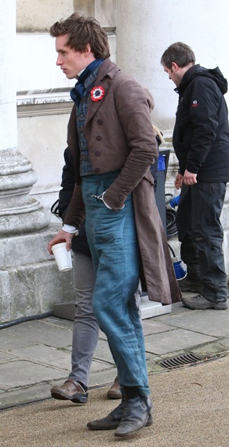 Eddie Redmayne was photographed today in Greenwich on the set of Les Miserables.