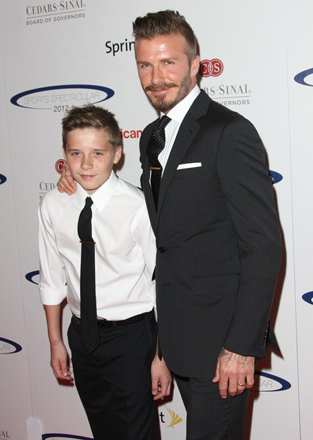 Anyway, Marc was there with his girlfriend Shannon De Lima. Becks had the whole proud family (except H7) in attendance to support him. Brooklyn is almost as tall as his mother when she’s in 6 inch heels. I really don’t know why she insists on posing with her head dipped like that. It only makes her look shorter.