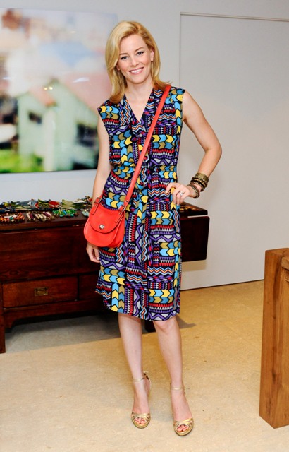 Attached - Elizabeth Banks at an event in Beverly Hills last week. (Lainey: Love that little bag.)