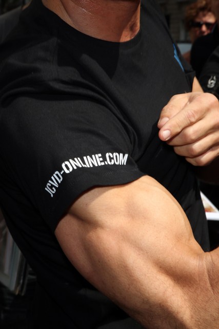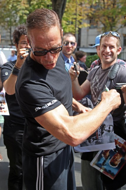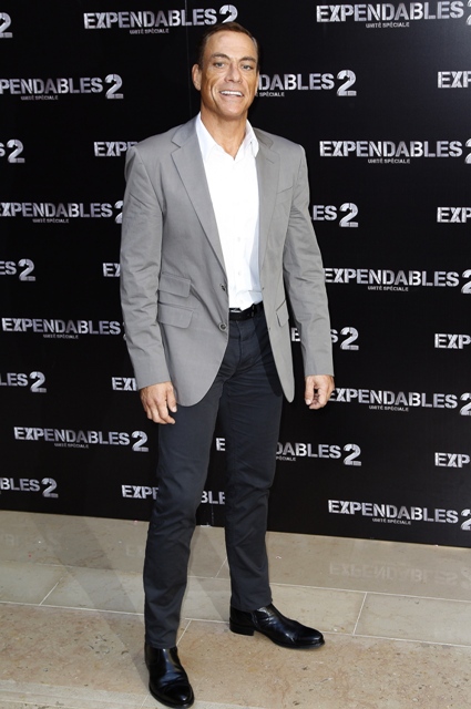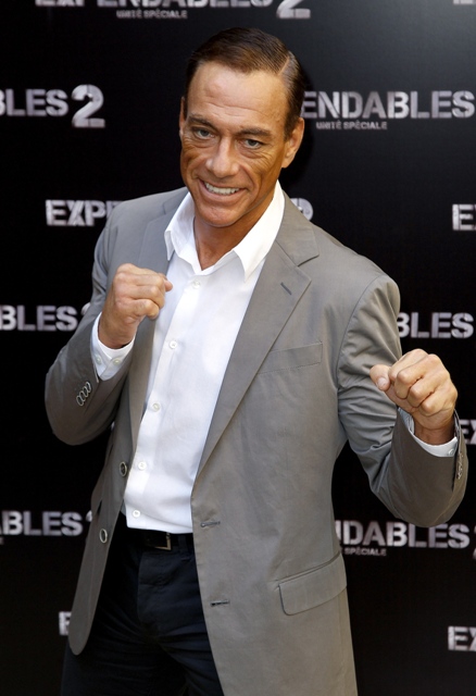 As you know, I’ve been obsessed this week with Jean Claude Van Damme on press tour for The Expendables 2. He’s been bringing it on every carpet. Here’s JCVD being JCVD in Paris. I wonder what his wife is really thinking. I also wonder if he split tests his pants before buying just to make sure they can accommodate his random kung fu kicks.