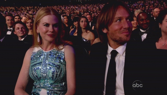 They put her in the front row in the best seat, giving her the clout of George Clooney, and then never cut away to her, even though she had her hand on Keith Urban's thigh quite often in an obvious display of "we are so together"ness. A waste.
