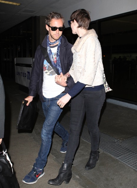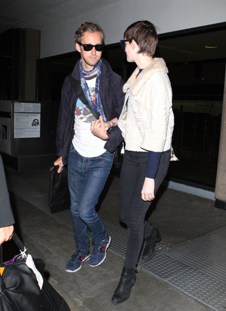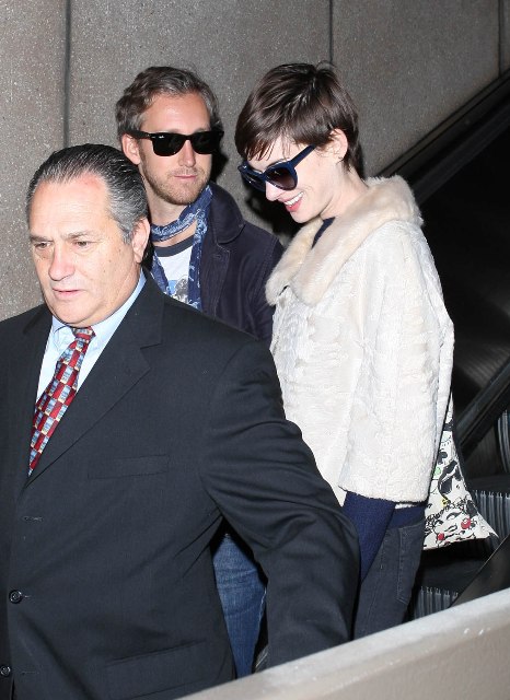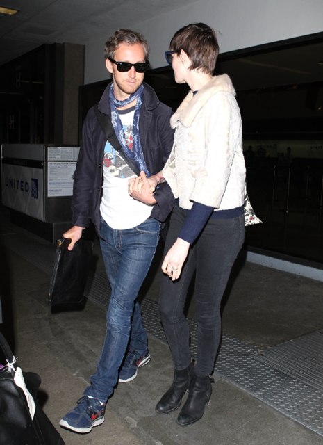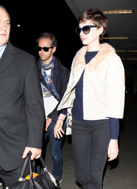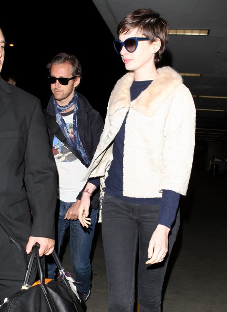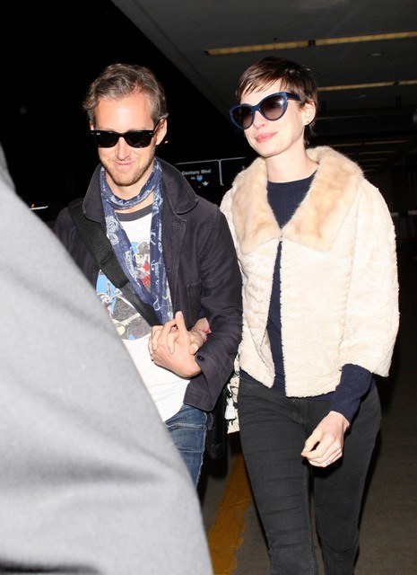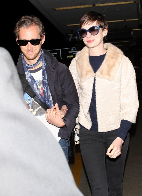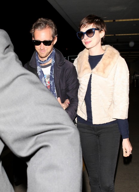 Attached - Anne Hathaway and husband Adam Shulman arriving at LAX.