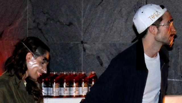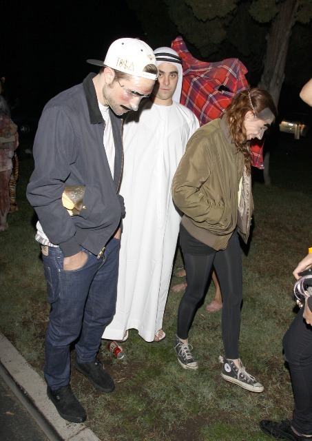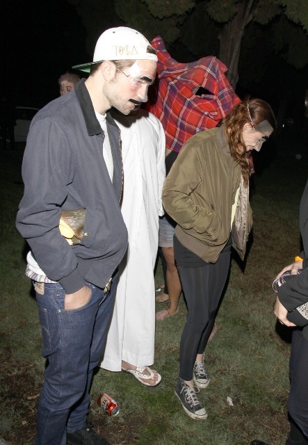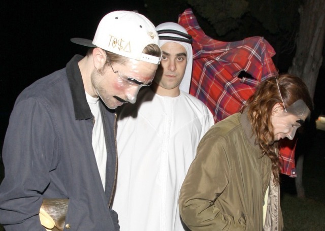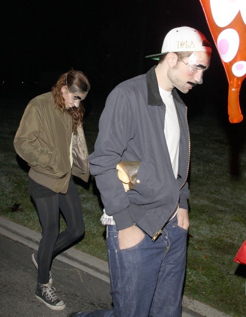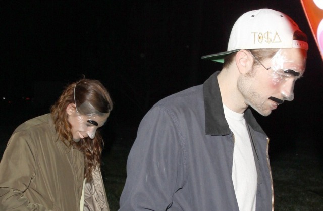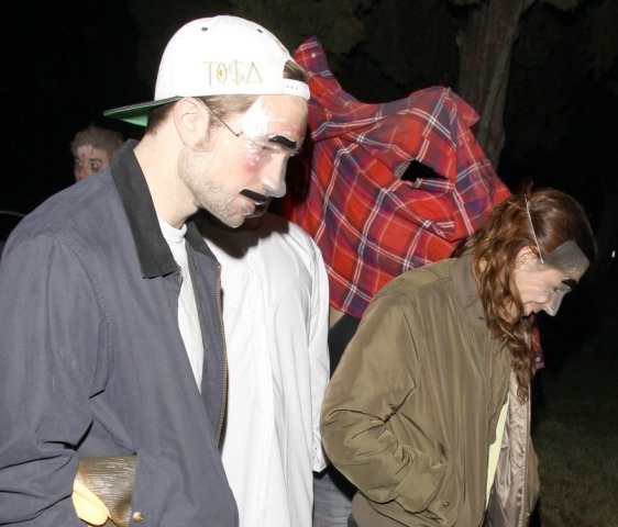 It’s not often that we see pictures of Kristen Stewart and Robert Pattinson holding hands. Most of the time, when the paps are around, they’d rather book it into a trash can than give up the shot. Last night there were paps from several pap agencies shooting them when they hit up a Halloween party. And... here they are, holding hands. He has forgiven her. They are back together. Twilight 5 opens on November 16.