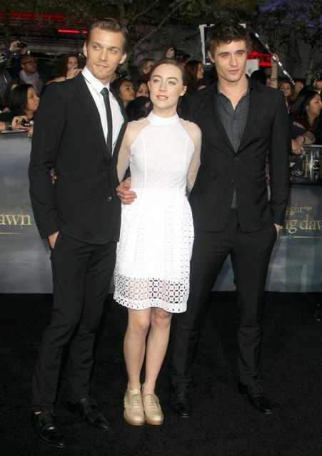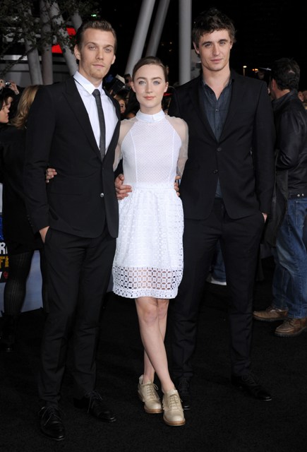 Here are Ronan and Irons with co-star Jake Abel at the Twilight 5 premiere the other night and Ronan shooting scenes for The Host last night.