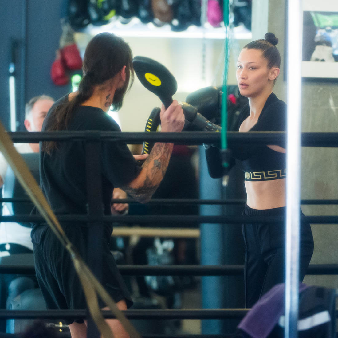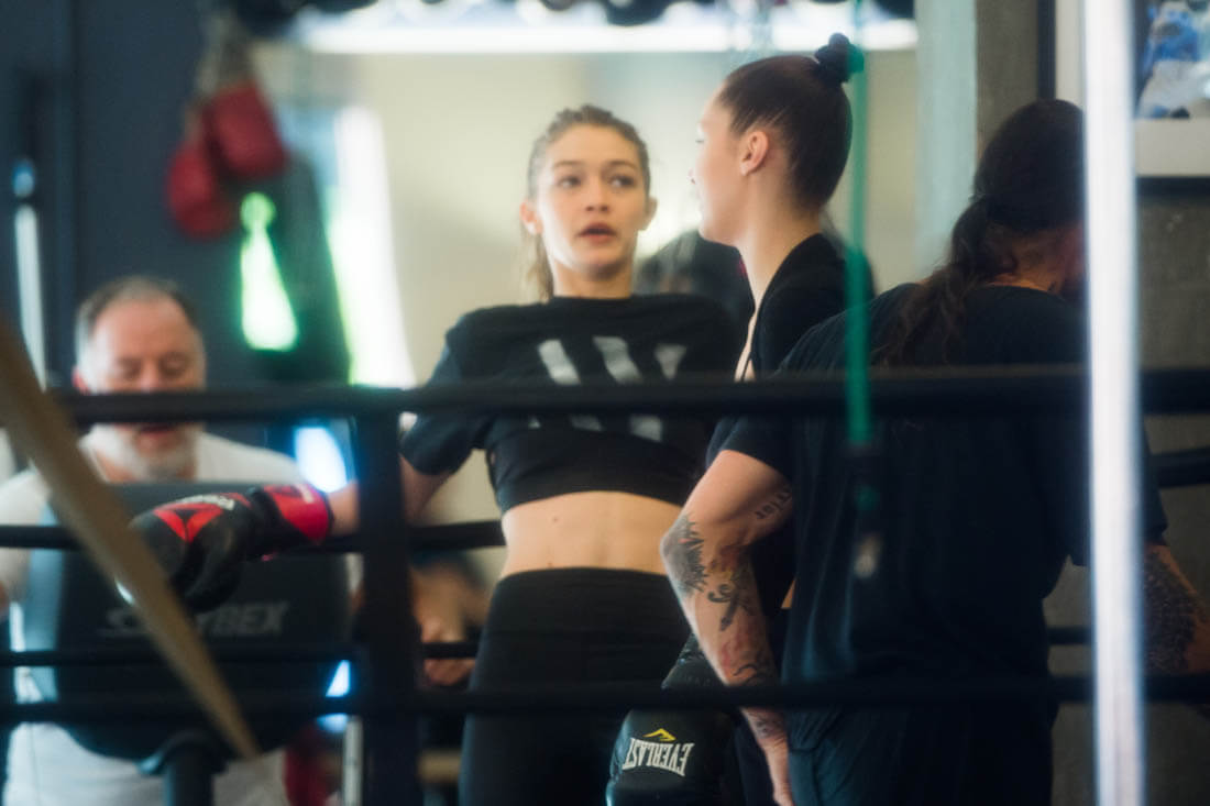 The internet is forever so it doesn’t matter that Mert tried to wipe it, this shot is basically immortal. And everyone was talking about it. So. Bella and Gigi hit the gym yesterday. They boxed. Bella dropped into some squats to work on her glutes. Bella’s ass is just as firm and round as Selena’s, OK?