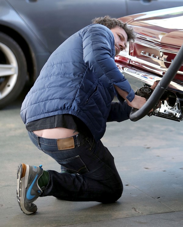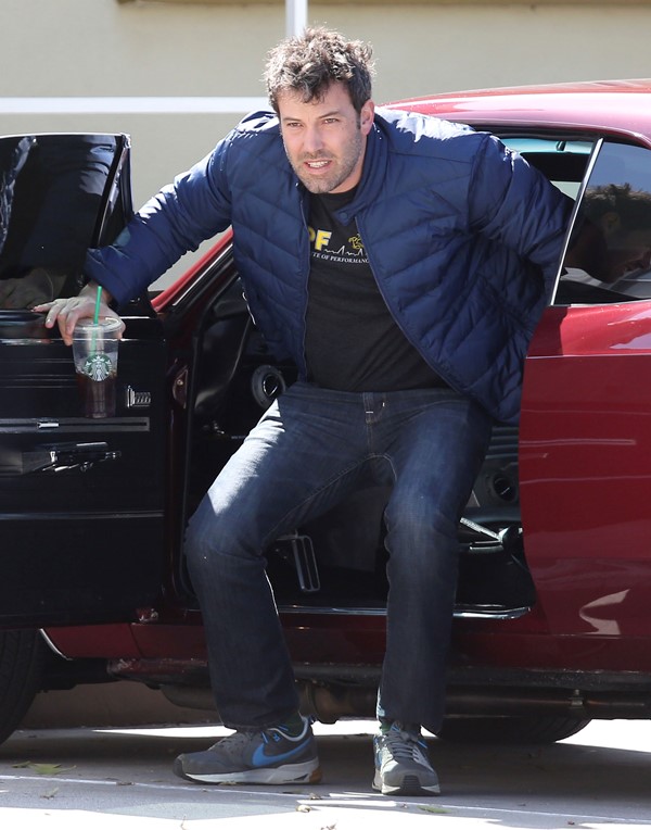 Ben Affleck and Jennifer Garner went for back massages together yesterday. Maybe not Ben’s most attractive sighting. Check the way he’s getting out the car. That’s a pretty un-sexy dismount, right there. It’s a half squat. With turned out feet. Yeah, not sexy. And what happens when he bends down isn’t cute either. But you can hardly blame him. Look, he appears to be experiencing some discomfort, back pain.