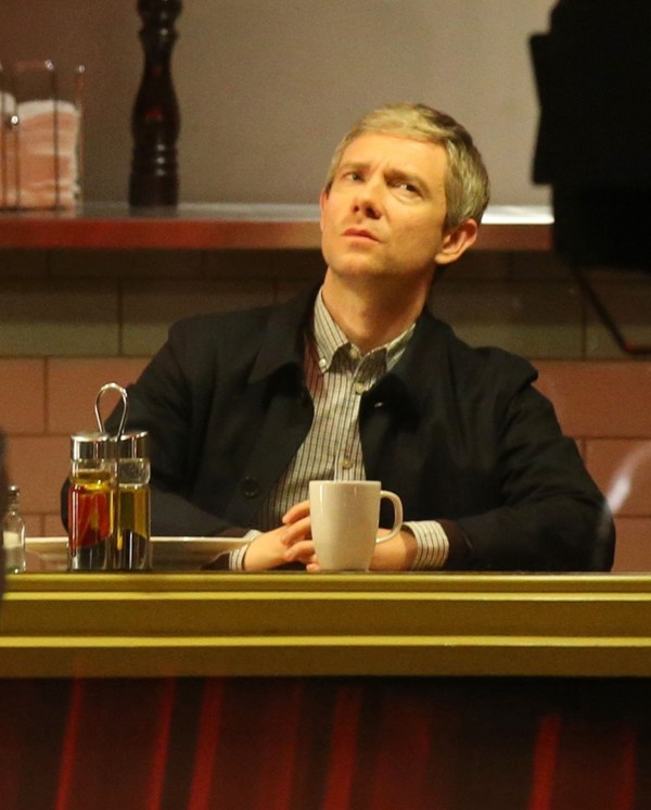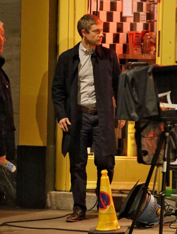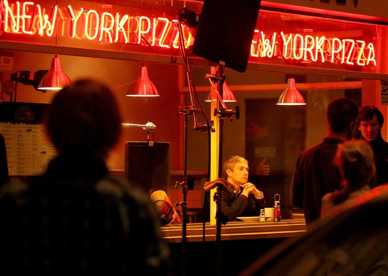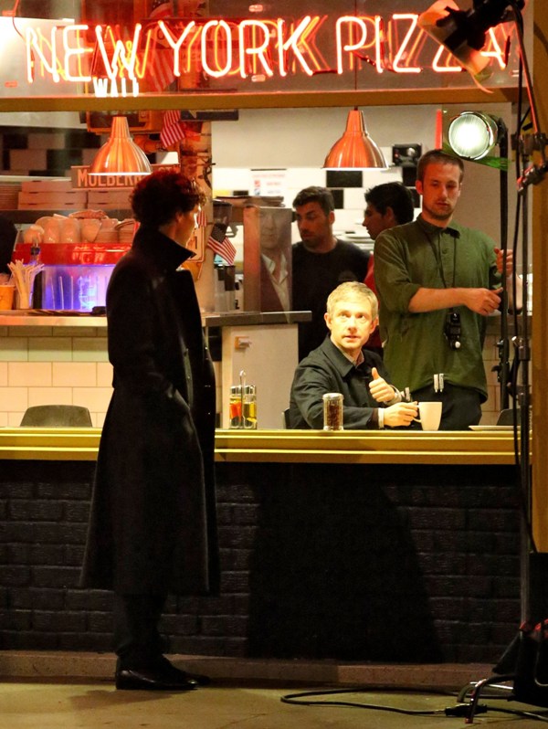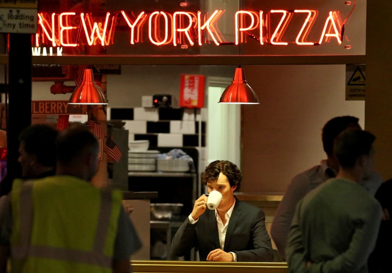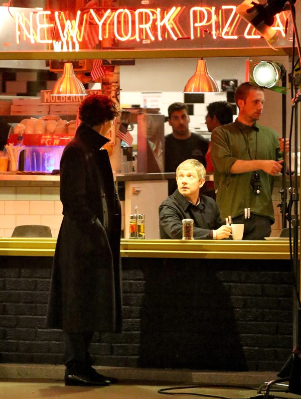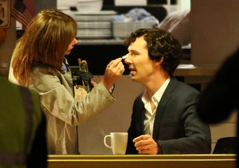 Attached – Cumberbatch shooting Sherlock in London today.
