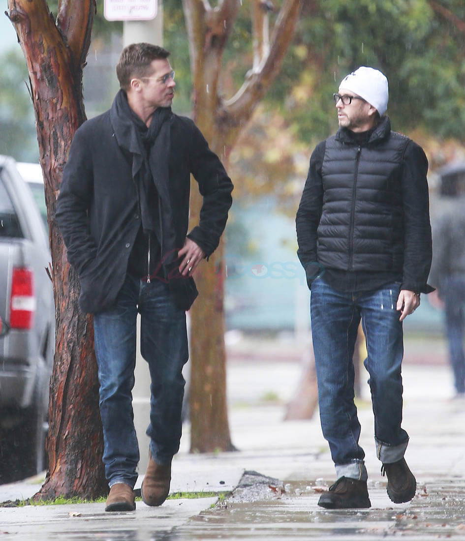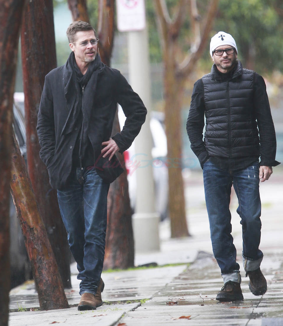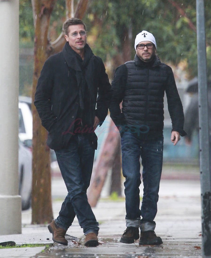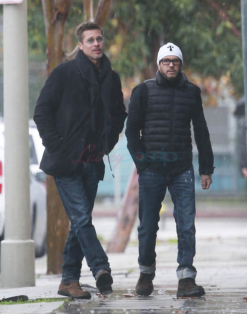 When the Brange divorce was first announced, Brad went unpapped for months, successfully staying undercover and avoiding photographers. He showed up at the Golden Globes as a surprise presenter. Then, the next day, he and Angelina Jolie was announced that they’d be working through their divorce with a private judge so that no further details about their mess would be revealed to the public. And a week after that he was papped the night after a private hotel party while his assistant carried out balloons and champagne. This week, Monday, he was papped again, out with a friend, looking real good, as many of you have noted. Monday was also the day that the news of Angelina’s new fragrance deal with Guerlain was announced. Coincidence or conspiracy? Is this how it’s going to be now?