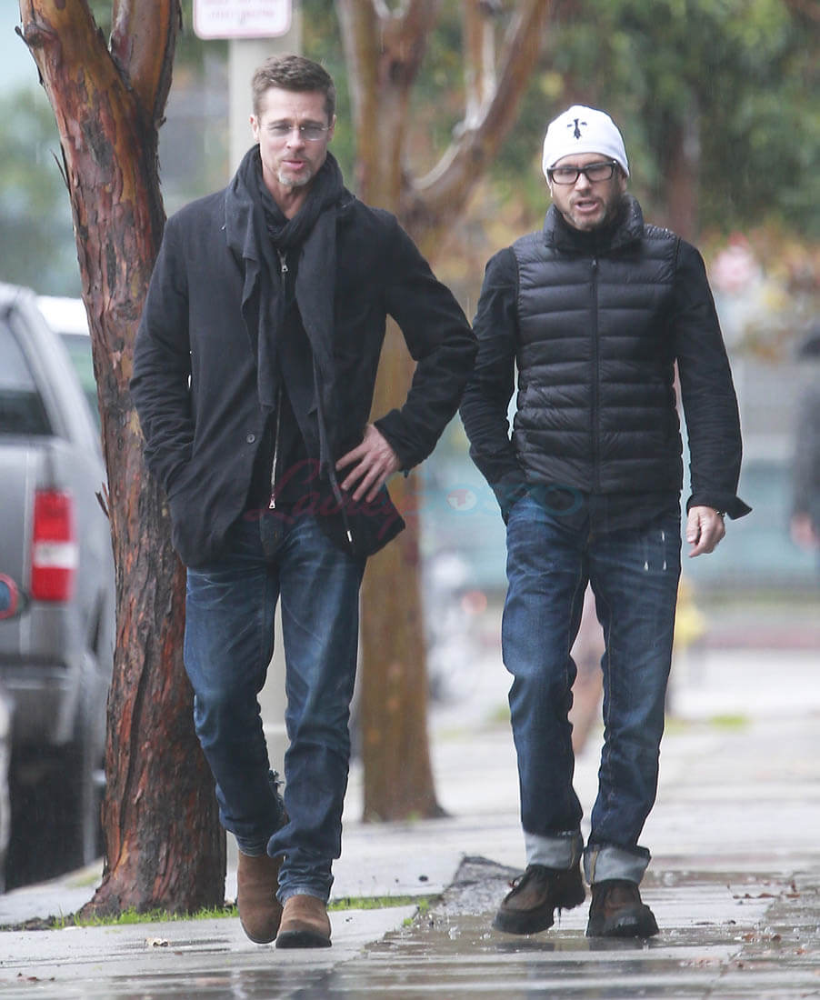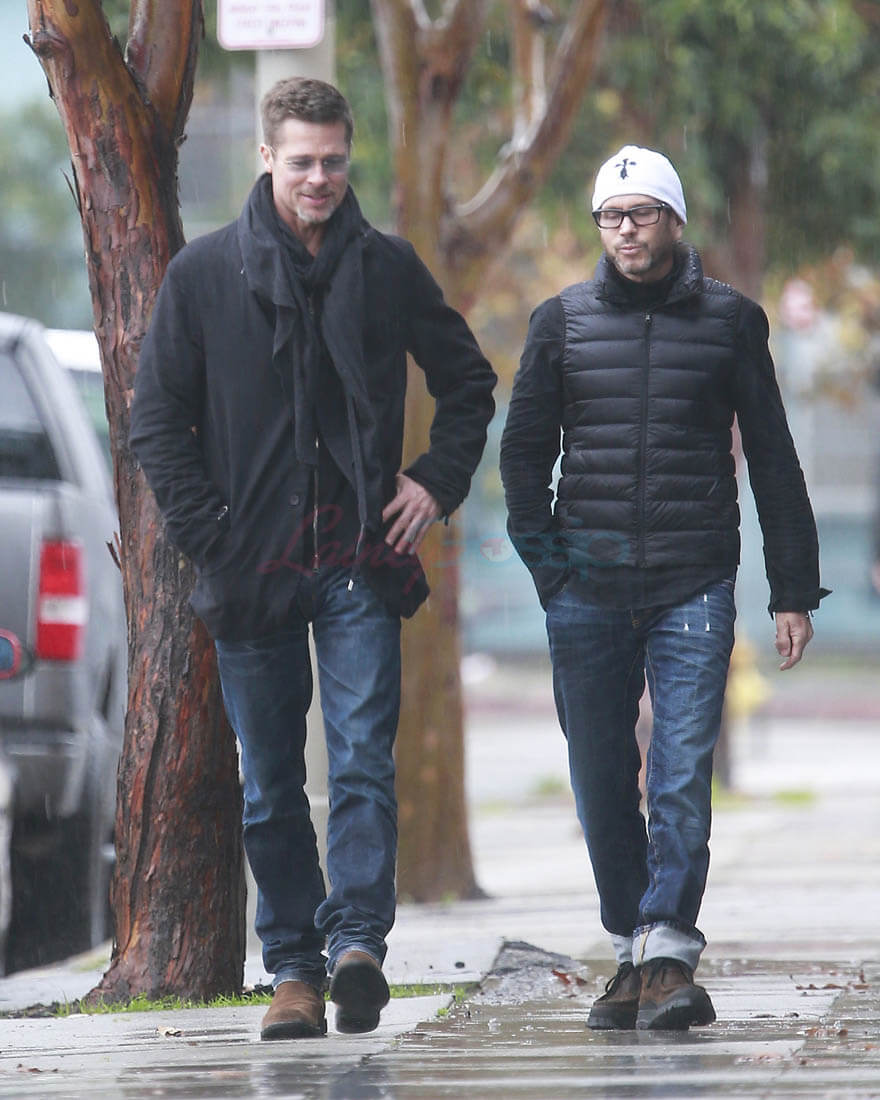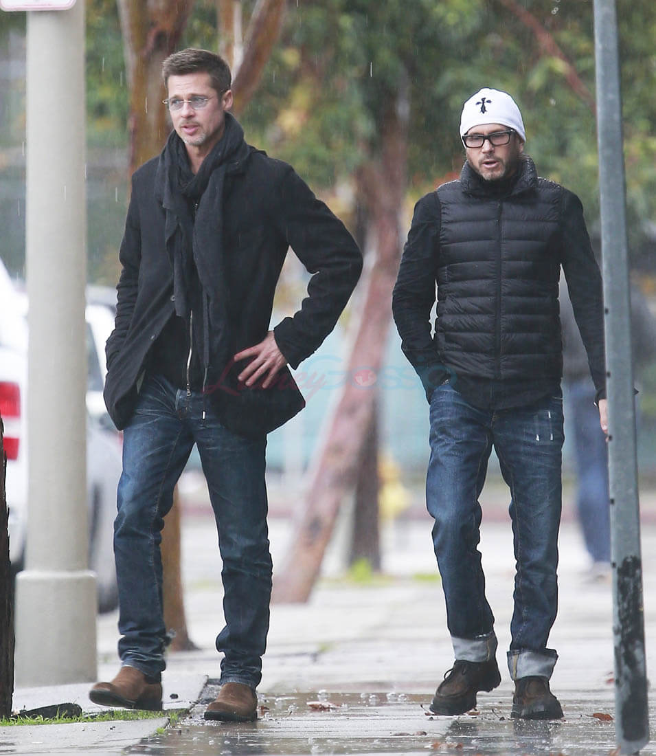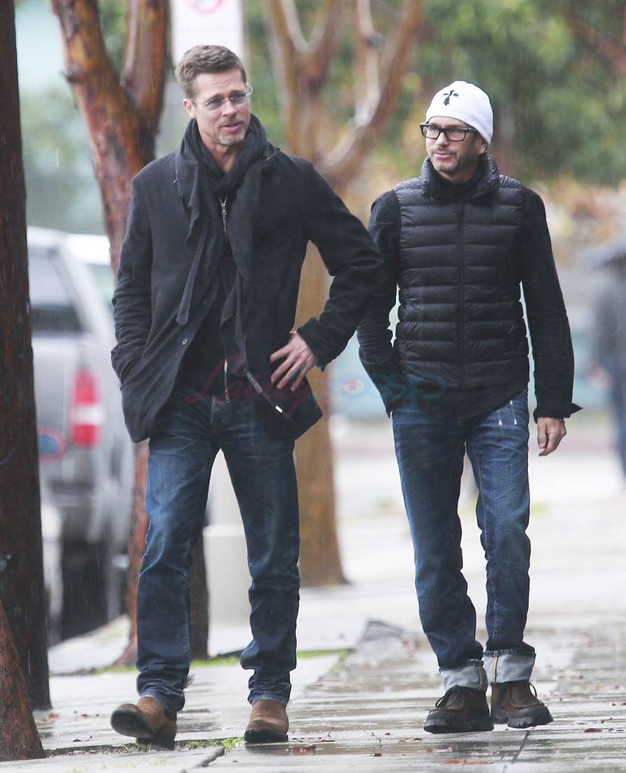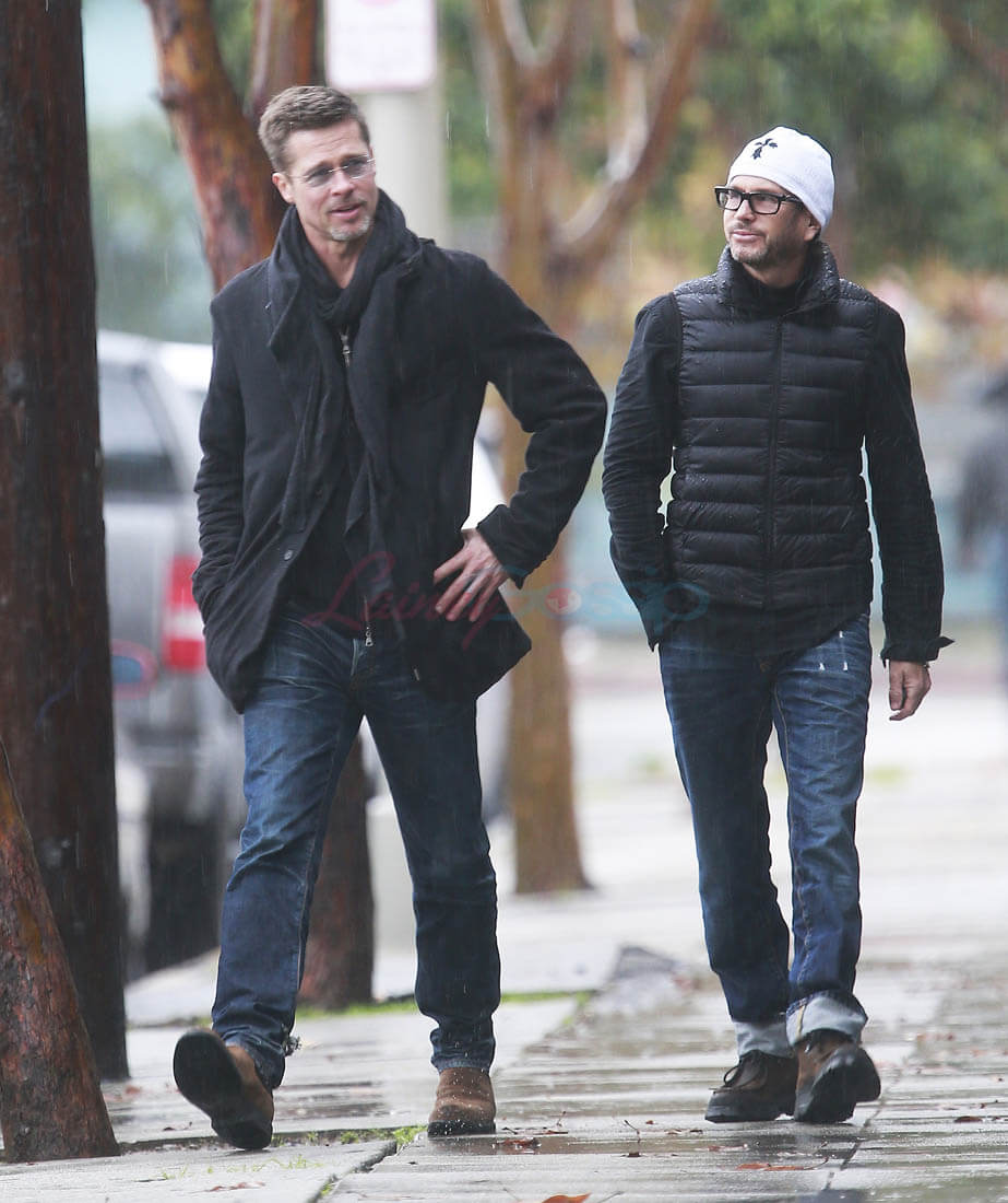 When the Brange divorce was first announced, Brad went unpapped for months, successfully staying undercover and avoiding photographers. He showed up at the Golden Globes as a surprise presenter. Then, the next day, he and Angelina Jolie was announced that they’d be working through their divorce with a private judge so that no further details about their mess would be revealed to the public. And a week after that he was papped the night after a private hotel party while his assistant carried out balloons and champagne. This week, Monday, he was papped again, out with a friend, looking real good, as many of you have noted. Monday was also the day that the news of Angelina’s new fragrance deal with Guerlain was announced. Coincidence or conspiracy? Is this how it’s going to be now?