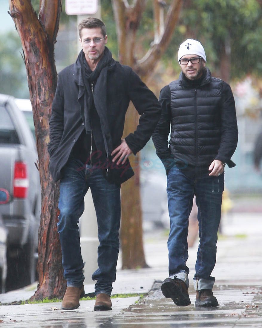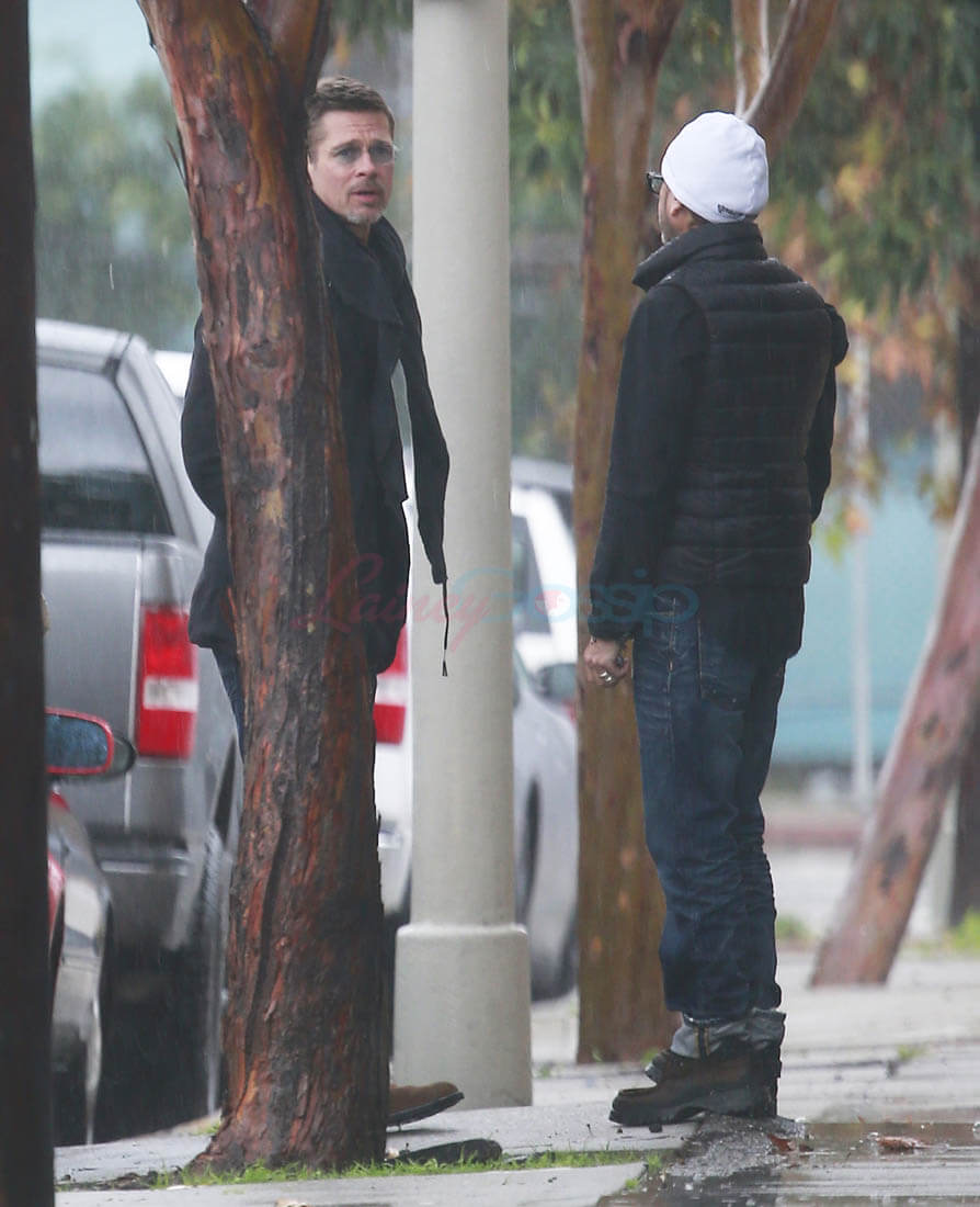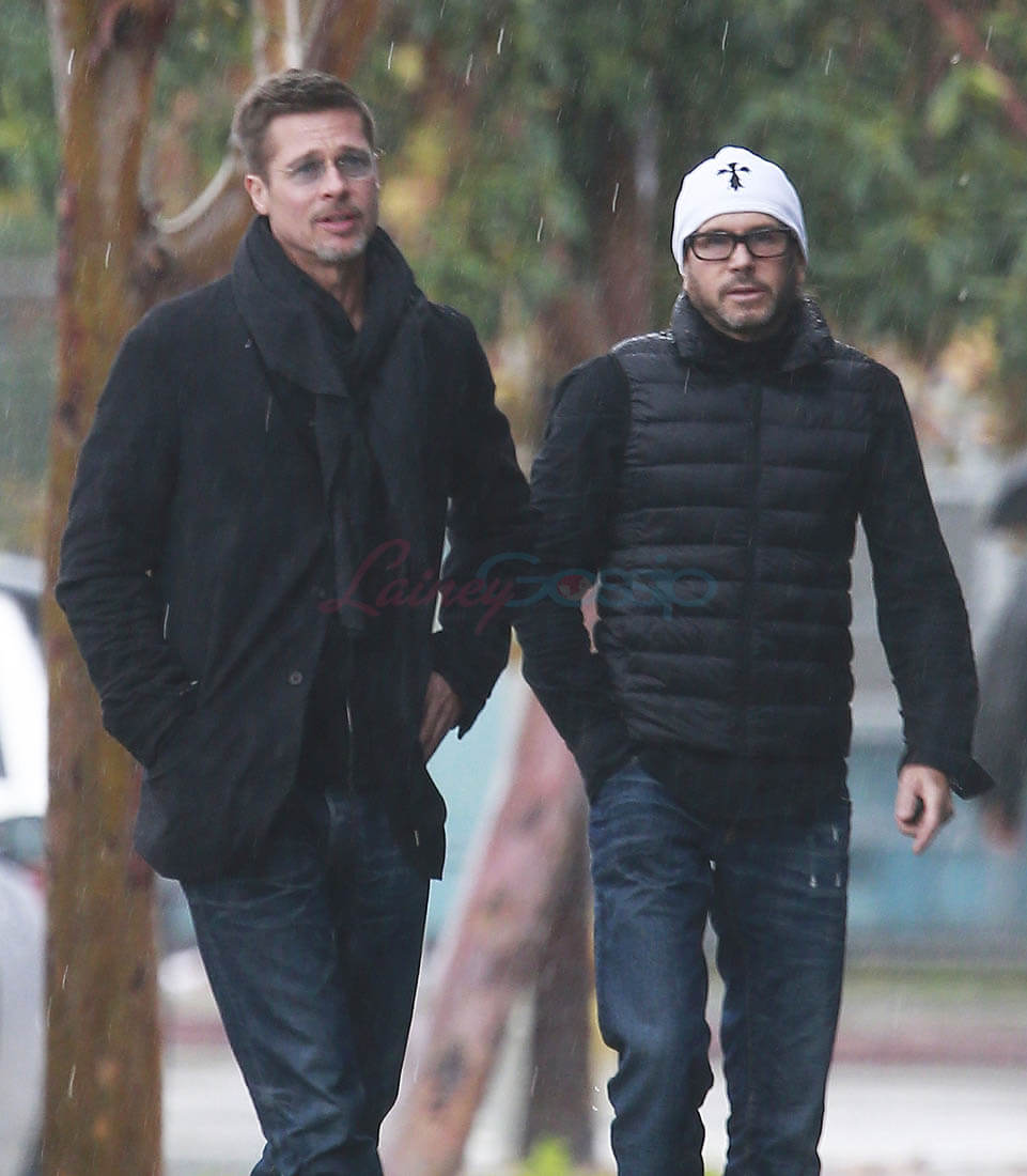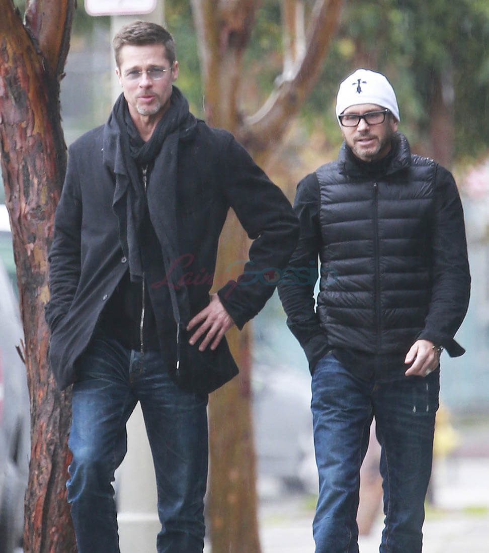 When the Brange divorce was first announced, Brad went unpapped for months, successfully staying undercover and avoiding photographers. He showed up at the Golden Globes as a surprise presenter. Then, the next day, he and Angelina Jolie was announced that they’d be working through their divorce with a private judge so that no further details about their mess would be revealed to the public. And a week after that he was papped the night after a private hotel party while his assistant carried out balloons and champagne. This week, Monday, he was papped again, out with a friend, looking real good, as many of you have noted. Monday was also the day that the news of Angelina’s new fragrance deal with Guerlain was announced. Coincidence or conspiracy? Is this how it’s going to be now?