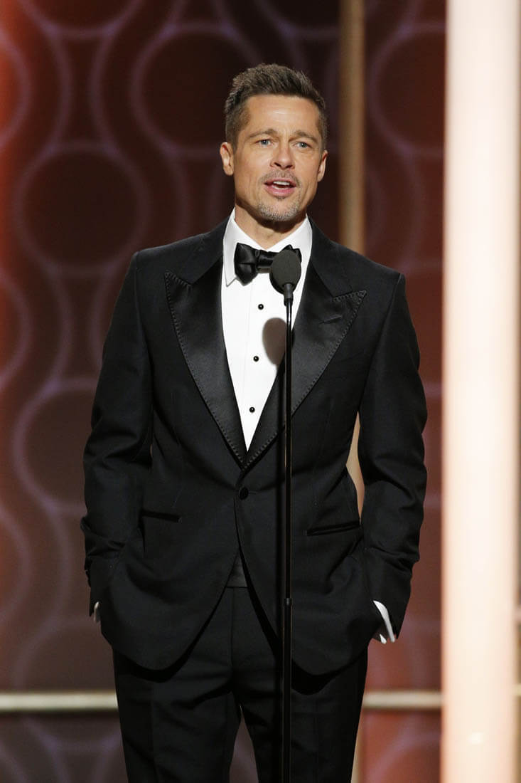 Brad did not walk the carpet. And when he walked out on stage, even in that roomful of celebrities, there was a stir, a murmur of excitement that likely matched the gasps of excitement from those watching at home. They were star-struck. Brad Pitt is one of the few who still have that effect. And he looked great. Really, really good. As good as he’s looked in a long time. Good enough to make you forget?