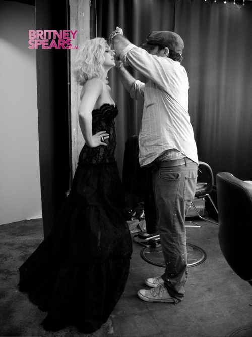 Attached – pictures recently posted on her official site BritneySpears.com showing Britney at a photo shoot and examining stage plans for the upcoming tour. Also Britney leaving Nobu after dinner last night.