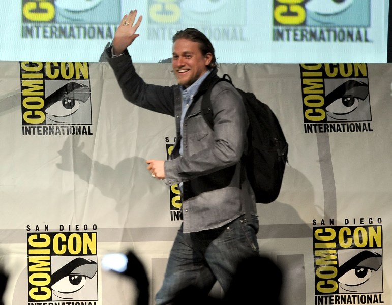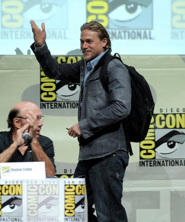 As usual, Charlie Hunnam was his un-photogenic self in San Diego. Especially when he’s in Jax mode. You’d know what I mean if you’ve seen Pacific Rim. My cousin Cat’s first reaction after coming out of the theatre was to text me about how hot he is with short hair. VERY.