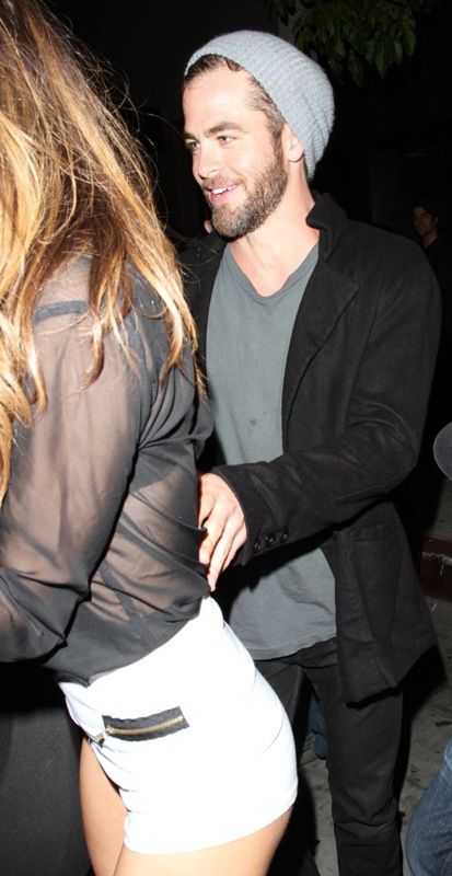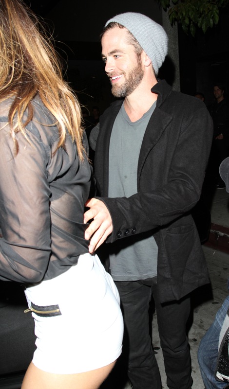 Chris Pine was photographed holding hands leaving a Hollywood club the other night. Her name is Amanda Frances. She’s a swimsuit model. According to US Weekly, even though Pine recently confirmed that he’s single, a source says that: