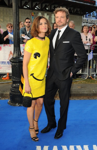Next… sigh… Colin Firth with the stunning Livia. Colin Firth. Colin Firth. As for why she’s wearing a smiley face dress with a bumble bee motif on the back – so it’s a ridiculous outfit. But she is a classic beauty. And every night she goes to bed with Colin Firth. And every night you don’t. Who wins?