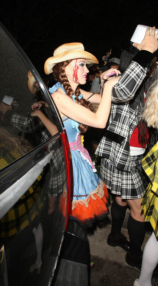 Gwen took off around 1:30am and went to Jared Leto’s. Blake was already there. And then shortly after that, they left together, and were supposedly seen holding hands on their way out, Gwen leading the way, until they saw a photographer out front and let go of each other. However they did get into the same car to head home. Whose home? Probably his. Or a hotel. Because I don’t think she’s bring him home to her kids. Unless…was it Gavin’s turn to be with them on her night out?