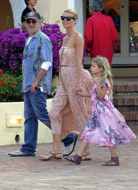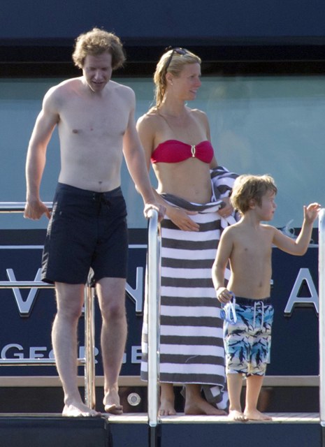 Spielberg's yacht is huge. They must have a chef. Who cooks to Gwyneth's specifications? Gwyneth has been on holiday in Italy with her Uncle Morty, her brother, and her children. Chris Martin is performing on the festival circuit with Coldplay.