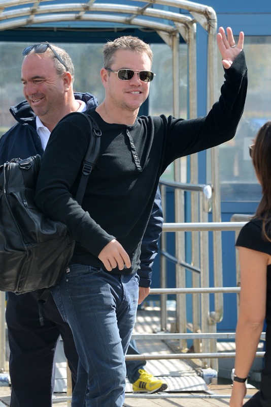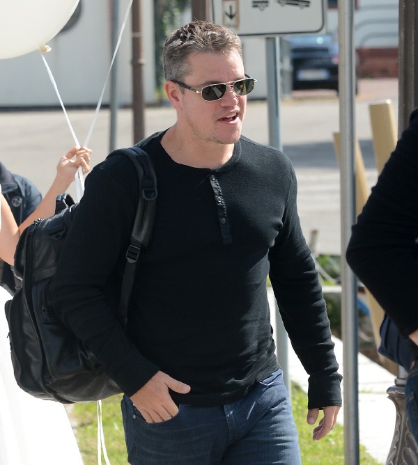 Here’s Matt Damon arriving with his wife Luciana. If Damon’s there, I can’t imagine John Krasinski and Emily Blunt not being there. I’ll post more photos as they become available through the day… if I don’t get distracted by my birthday.