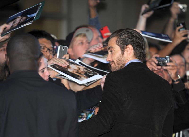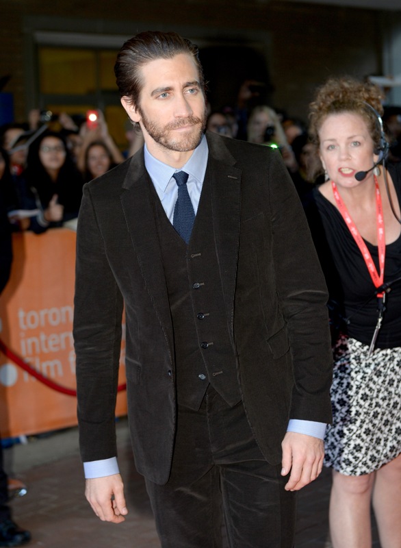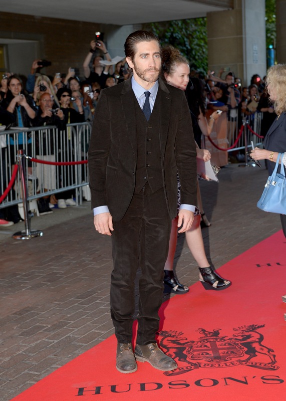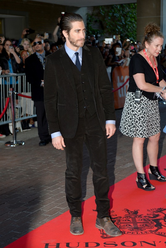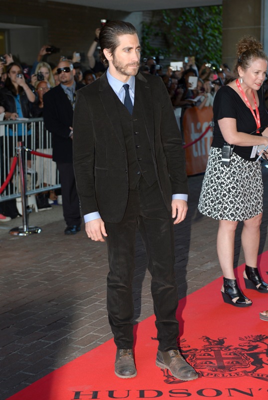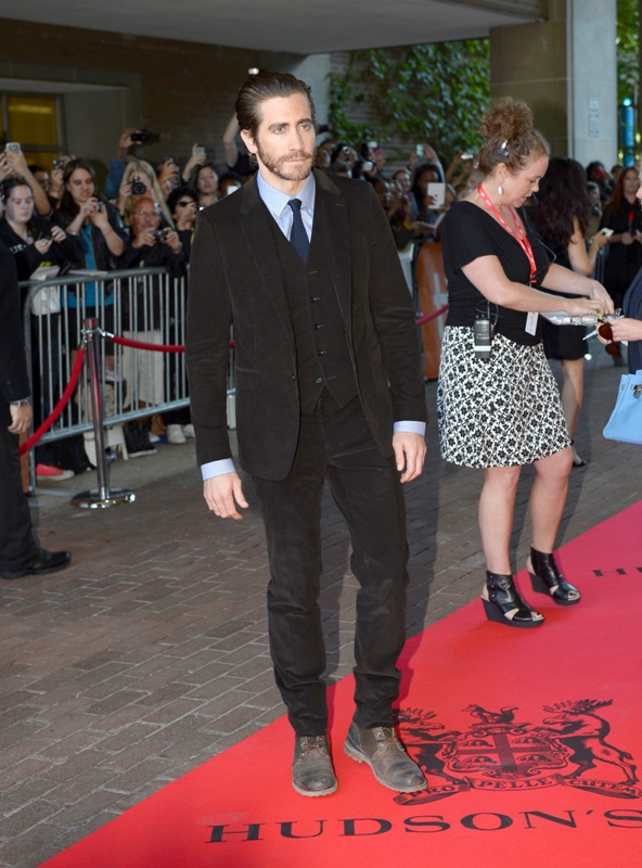Here’s Jake Gyllenhaal at the premiere of Enemy last night. His girlfriend, Sports Illustrated model Alyssa Miller, was not photographed on the carpet. But she was there. I saw them together at the Hugo Boss after-party and it was like a fragrance ad come to life. They’re attractive enough as it is when they’re apart. When they’re side by side, and she has both arms wrapped around his neck, and his hand is on her leg, it’s ridiculous, so gorgeous it’s hard not to keep staring.