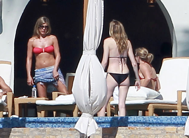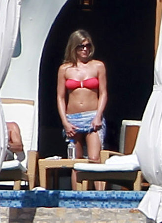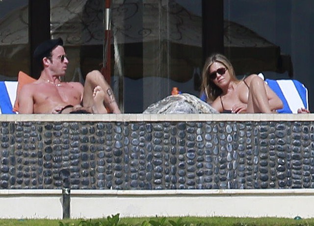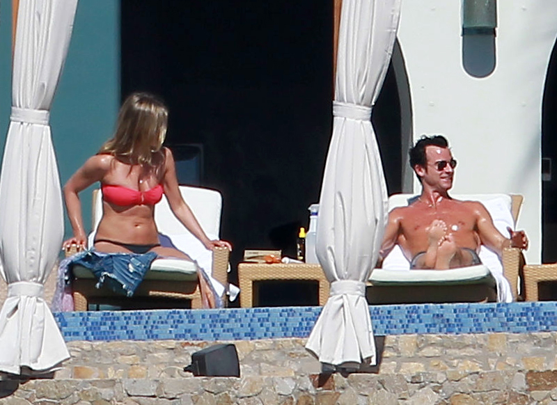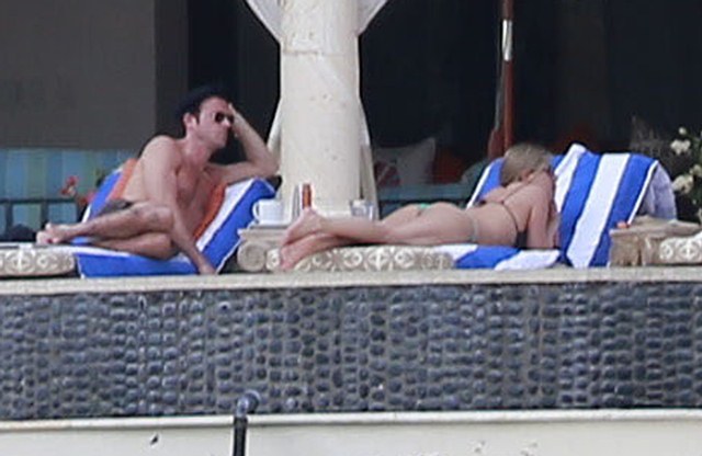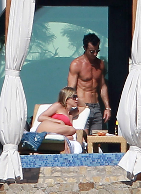 Every time George Clooney makes a movie these days it’s considered an Oscar contender. Who wouldn’t want in on some of that action? Is that why Justin Theroux signed with CAA? His fiancée can help with that too. So while Brange is off with their nanny militia over in the Caribbean, the child-free celebrity circuit is counting down to 2013 on the other side -- she and Justin apparently had dinner with George and Stacy Keibler in Cabo the other night. This is great, right? That Justin Theroux’s equivalent in this equation is Stacy Keibler? If only George would make it conditional on Justin investing in a proper pair of beach shorts. I mean at this point they have to be pretty sweaty, right? Unless he sends them to the wash every night. But even still, badass, denim should not be laundered so frequently. I really do enjoy his commitment to staying flexed. Paparazzi awareness is a very good attribute.