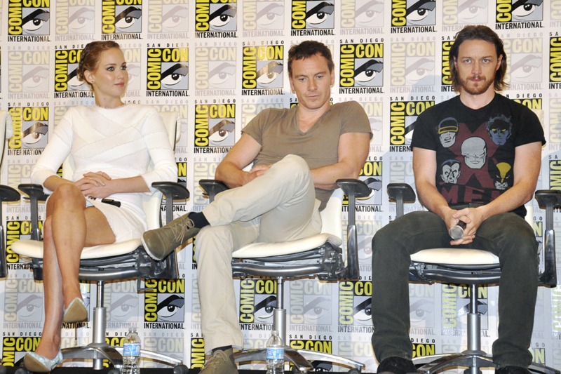 As for Jennifer Lawrence’s participation at the X-Men presentation, she was there with Nicholas Hoult, with whom she’s supposedly reconciled. They definitely weren’t going out of their way to not be around each other. He looked REALLY hot at Comic-Con, non? God she has the most amazing skin.