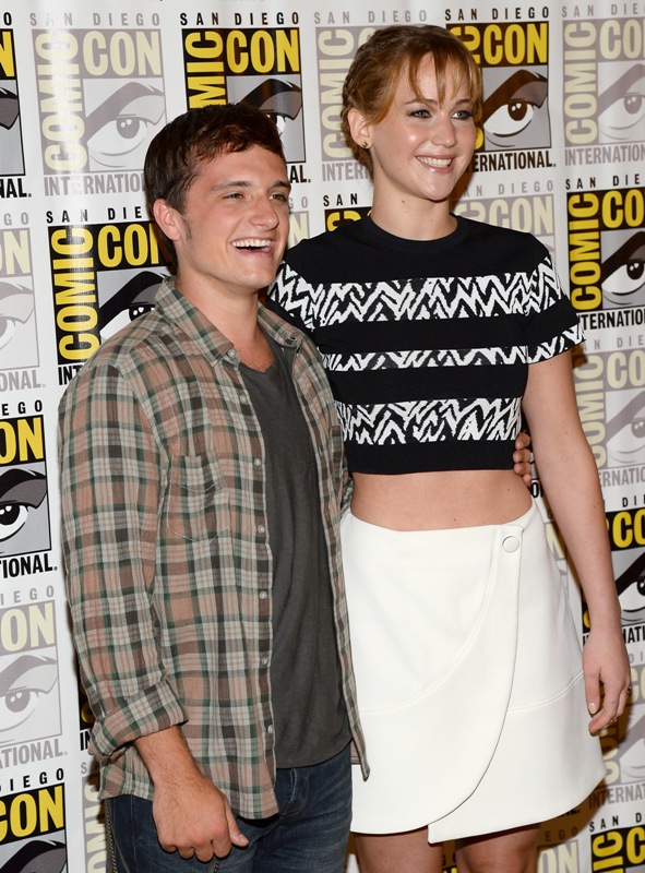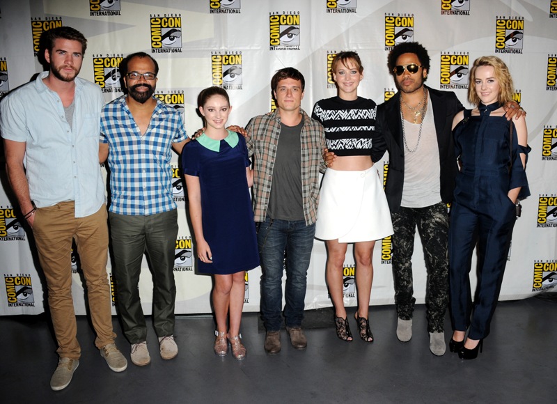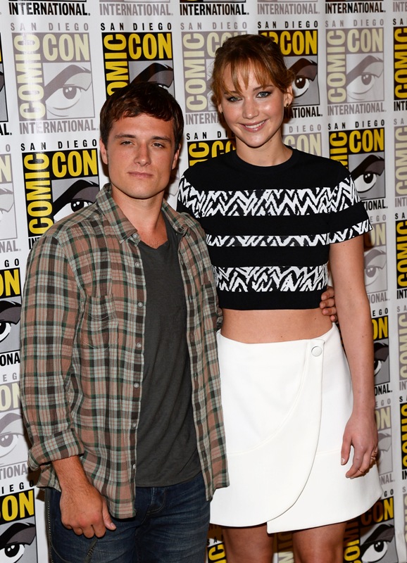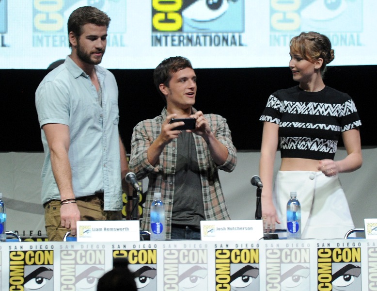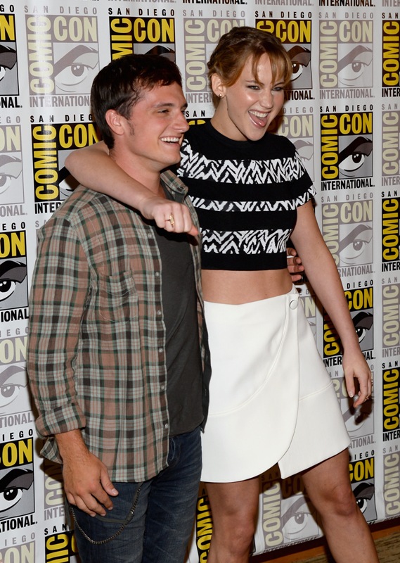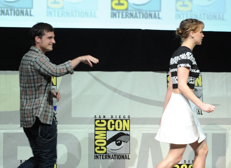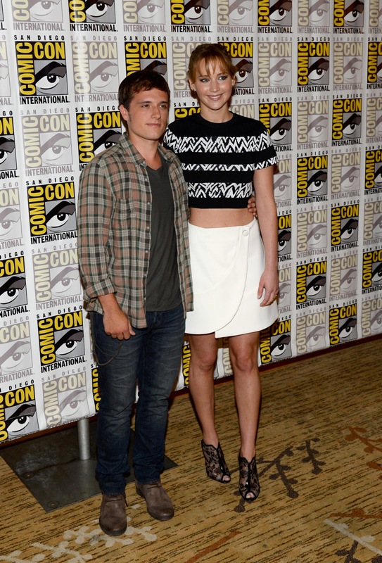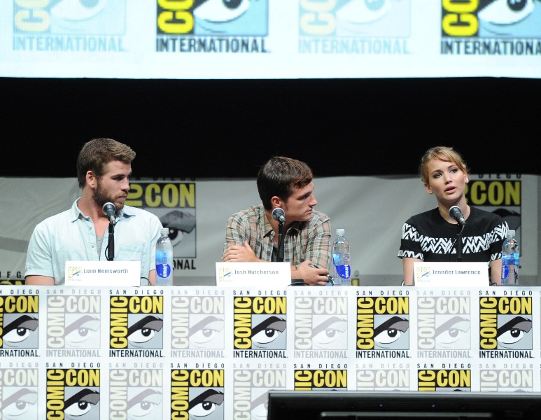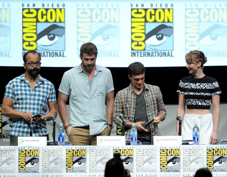 On the Catching Fire panel she was fun and funny and self-deprecating and respectful to her colleagues, as usual, telling stories about her on location parties, about how awkward it was shooting the kissing scene with Josh Hutcherson, about lending Woody Harrelson a crop top because he needed a new shirt. This is exactly the kind of inconsequential, light, entertaining information that you give at Comic-Con. No one comes to Hall H looking for a lecture on acting technique and character motivation. You are there to make them like you. And root for you. And showing some promising footage doesn’t hurt either.