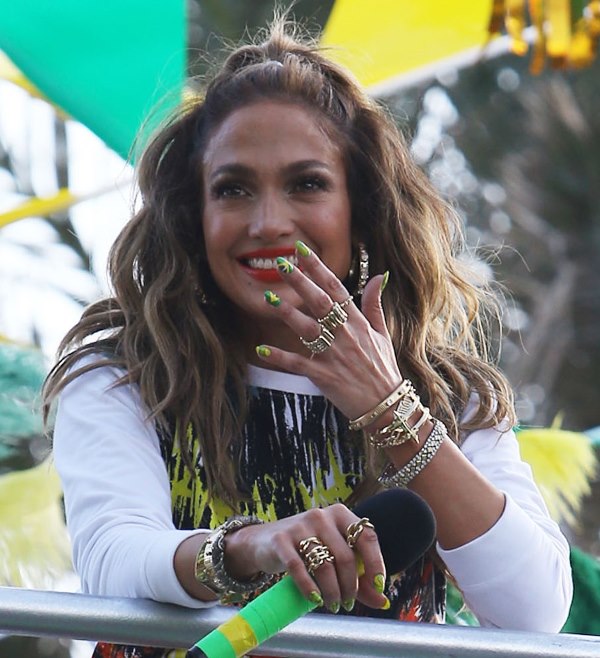 Jennifer Lopez was in Fort Lauderdale yesterday shooting a World Cup video. I haven’t seen any pictures of Slum Bear around. Bonus #1. Bonus #2 is her hair. I love when she wears her hair with the front up like this. No one does it better than her. You remember her style in Love Don’t Cost A Thing? This is a shorter variation of it with more volume on the sides. I’m so into it I’m imitating it today on The Social.