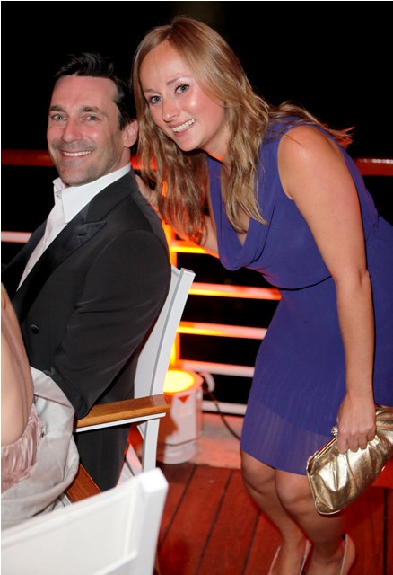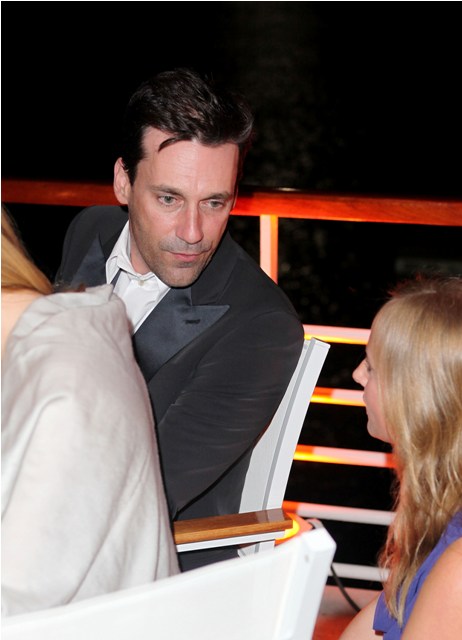 We were at the Hotel du Cap for the Art of Elysium/Vitamin Water event. Ryan Kavanaugh was being honoured and they were fundraising for disadvantaged kids. Jon Hamm arrived about two hours into it with Jennifer Westfeldt. They looked great together. She wore her gown really well. And she knew she had the man every other woman was into, aside from the model-y twats eager to hit up a producer/wanna producer and make it big in Hollywood. It's pedestrian here, that kind of situation. Beautiful woman, gross older man. The game I play with myself, that I introduced to our group that night, is called "Picture Him On Top Of You". It's self explanatory.