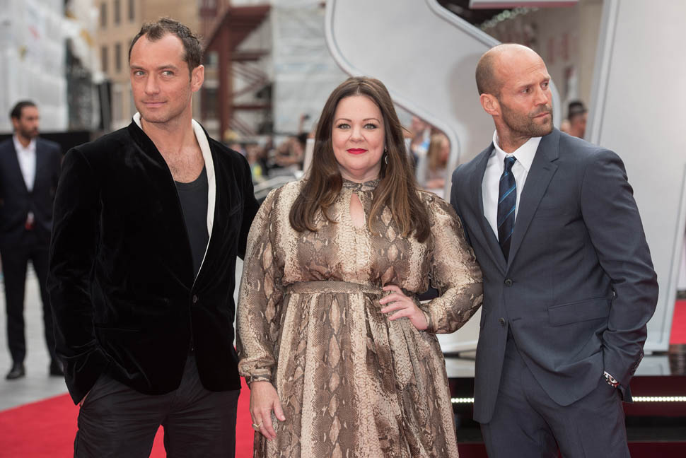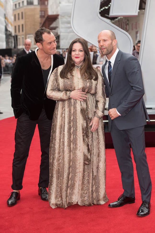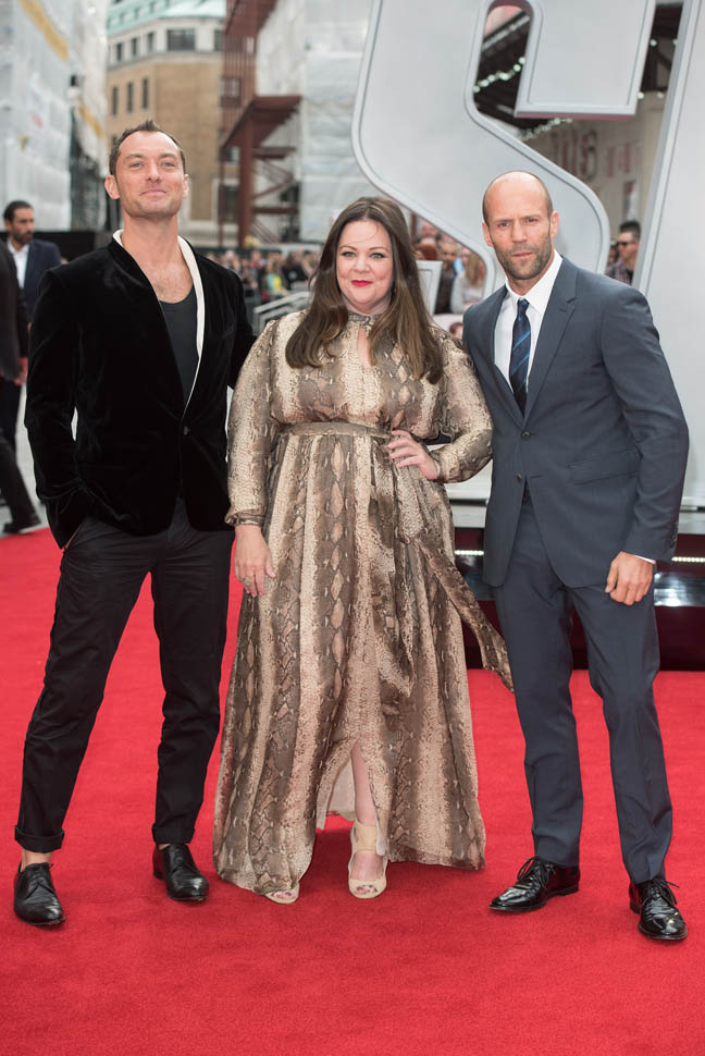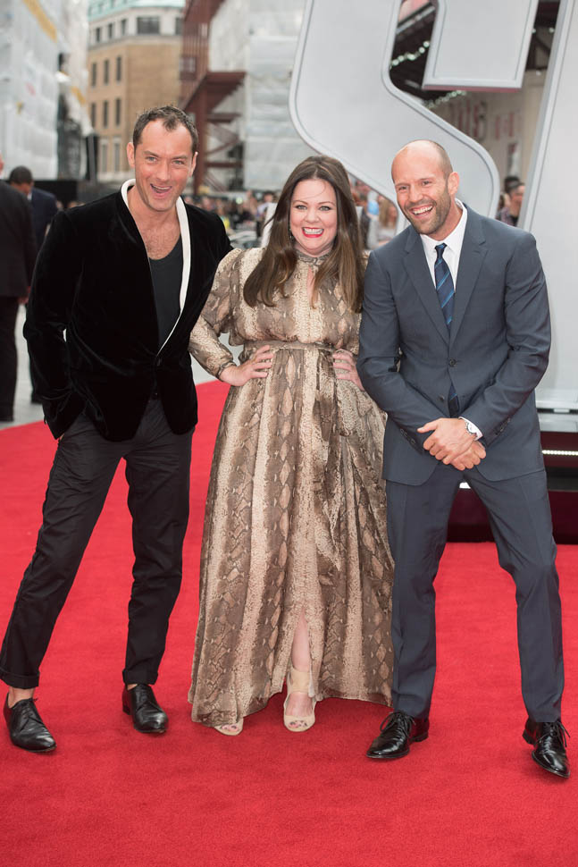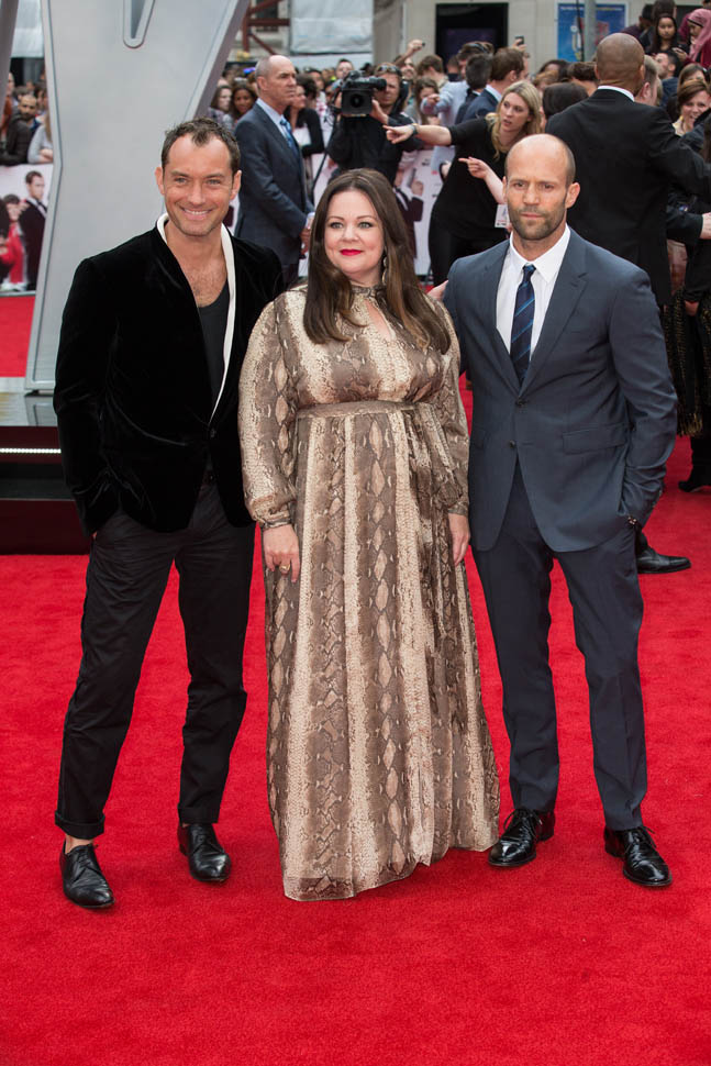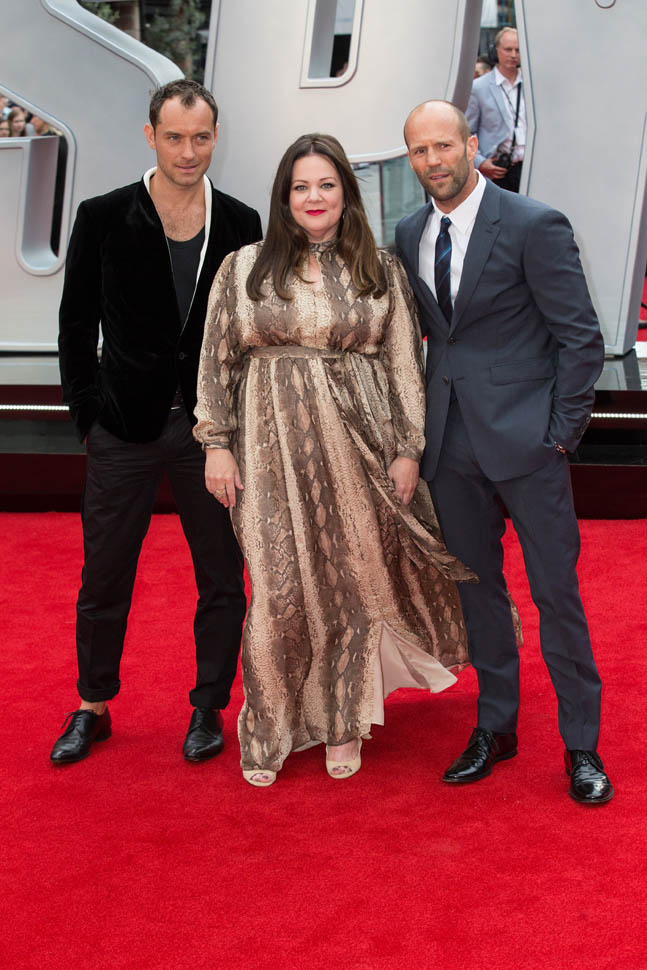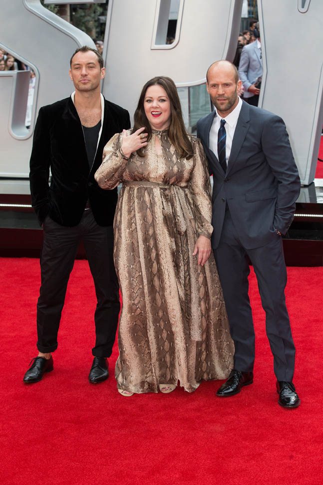 Jude joined Melissa McCarthy and Jason Statham at the London premiere of Spy tonight.