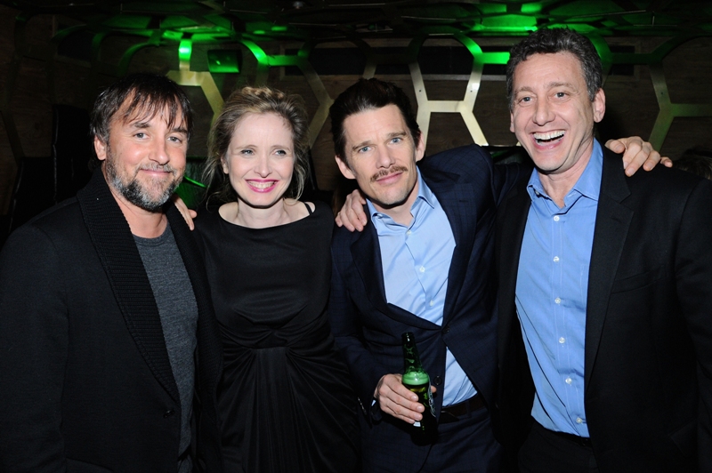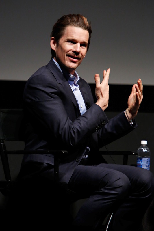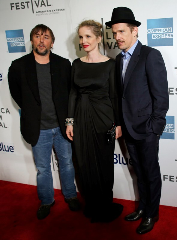 Julie Delpy, Ethan Hawke, and Richard Linklater were at the Tribeca Film Festival screening of Before Midnight yesterday in New York. Ethan’s hair is back to brown and he’s not wearing all that eyeliner anymore so I can go back to being attracted to him and hating myself for it instead of not being attracted to him at all and missing it. The film opens on May 24.