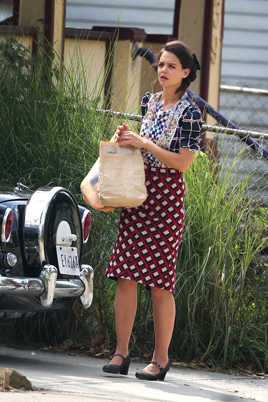 Katie Holmes is from Ohio. She's shooting a movie in Ohio now called Miss Meadows. I guess that's quite a Miss Meadows outfit then. It'd be a Diane Kruger outfit but for the shoes though. Her co-star in the film is James Badge Dale. Some are calling him the next great discovery. And by discovery I mean one of those actors who's been around for a while but finally seems to have found the formula. He was in both World War Z and Iron Man 3 this year. And Entertainment Weekly recently called him the American Sean Bean. What the tabloids might end up calling him is Katie Holmes's next. I wonder if that might be a deterrent for some actors. And a selling feature for others? Like if you told Kellan Lutz he could be in a movie with Katie Holmes and it might result in people gossiping about him dating Katie Holmes, he'd be all over it.