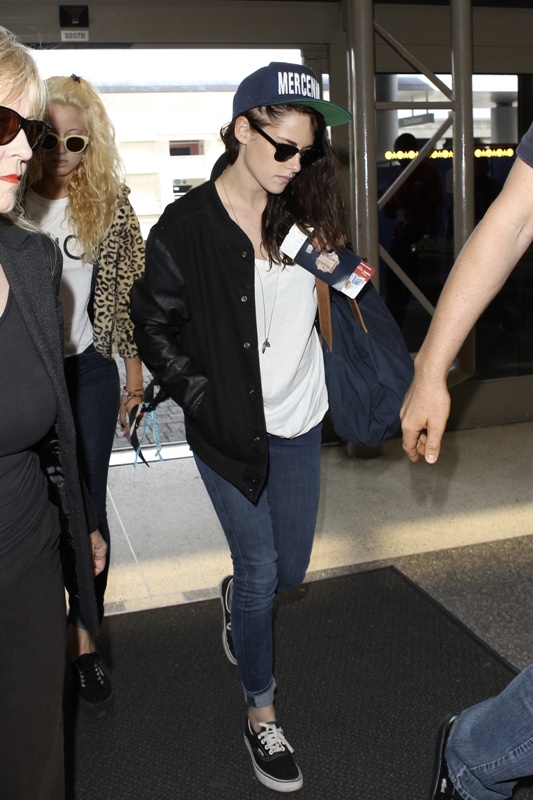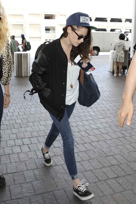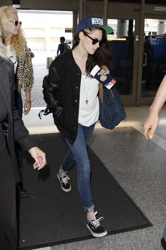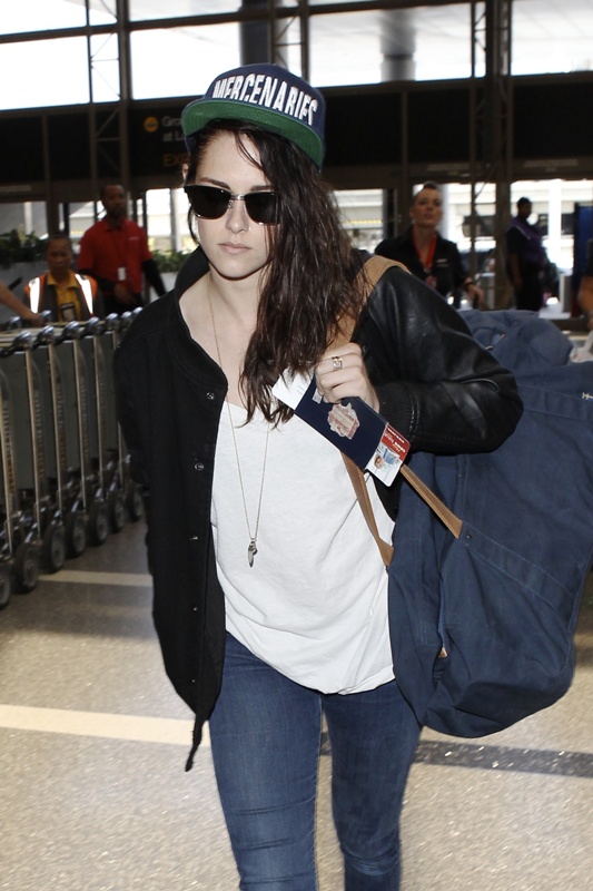 Here’s Stewart on her way of LAX the other day, presumably en route to Europe to work on a new film. Pattinson, meanwhile, remains in LA shooting Map To The Stars.