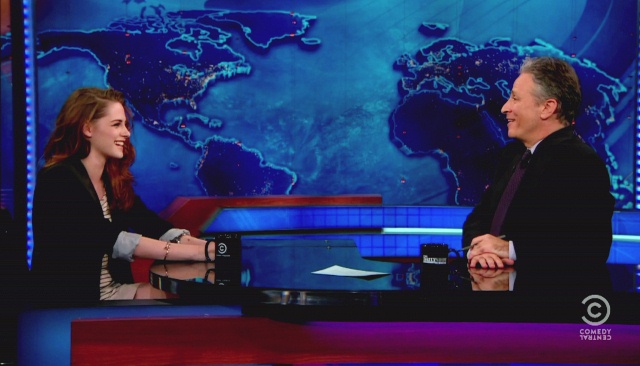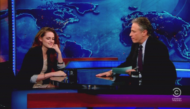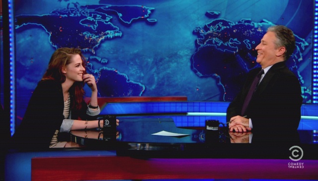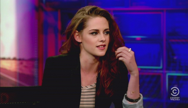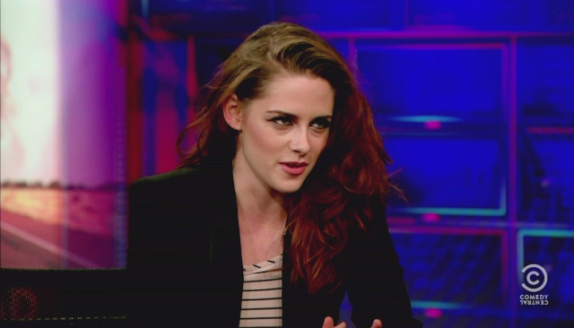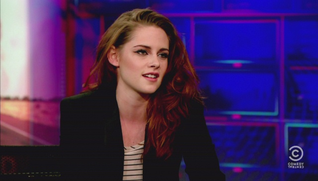 Jacek commented as soon as Kristen Stewart was introduced by Jon Stewart on The Daily Show last night how attractive she is. They’d just played the clip of her dancing wildly in On The Road and she’s such a lively combination of innocence and sex and youth and freedom in that moment, his reaction is understandable. As I noted after seeing the film in Cannes, Stewart really is magnificent in the film. She was pushed out of her comfort zone, she says, and the payoff is there, totally.