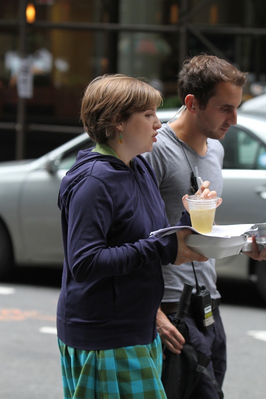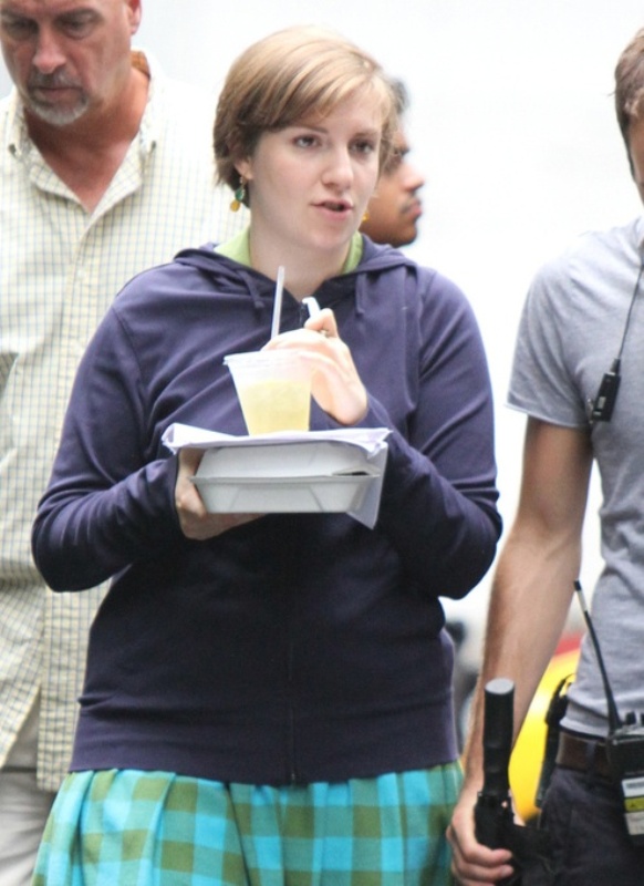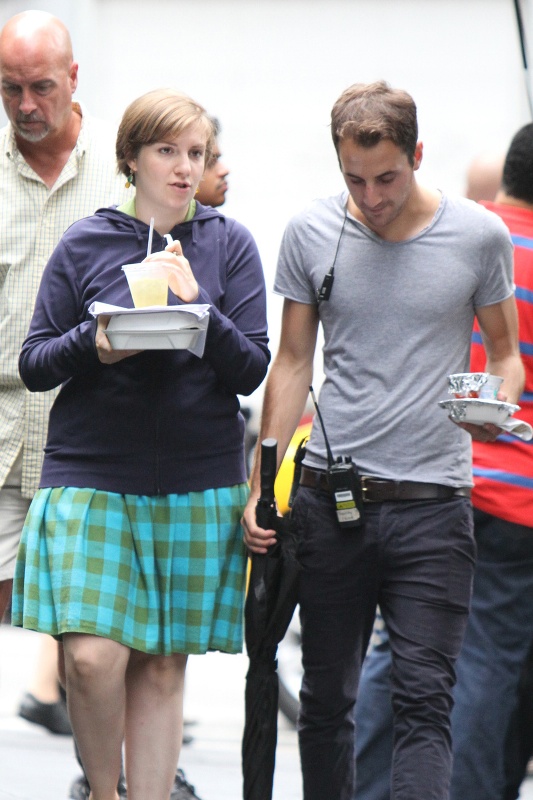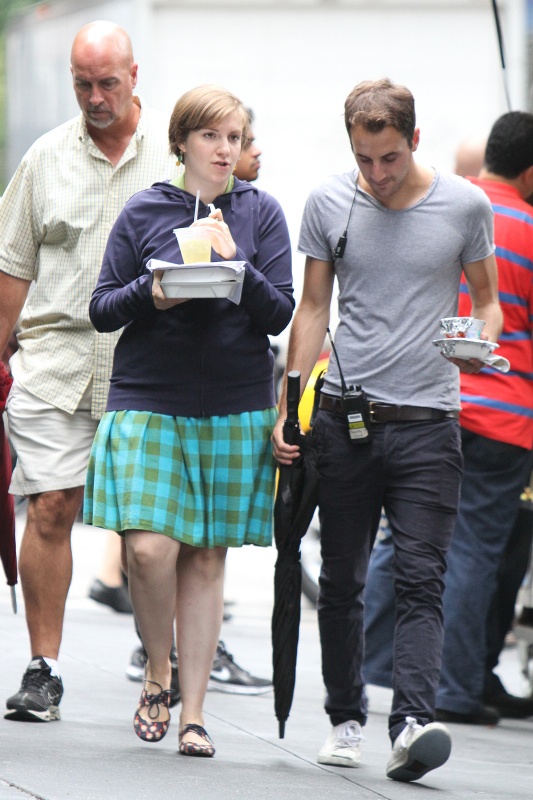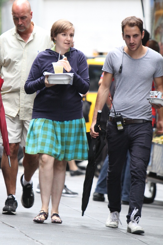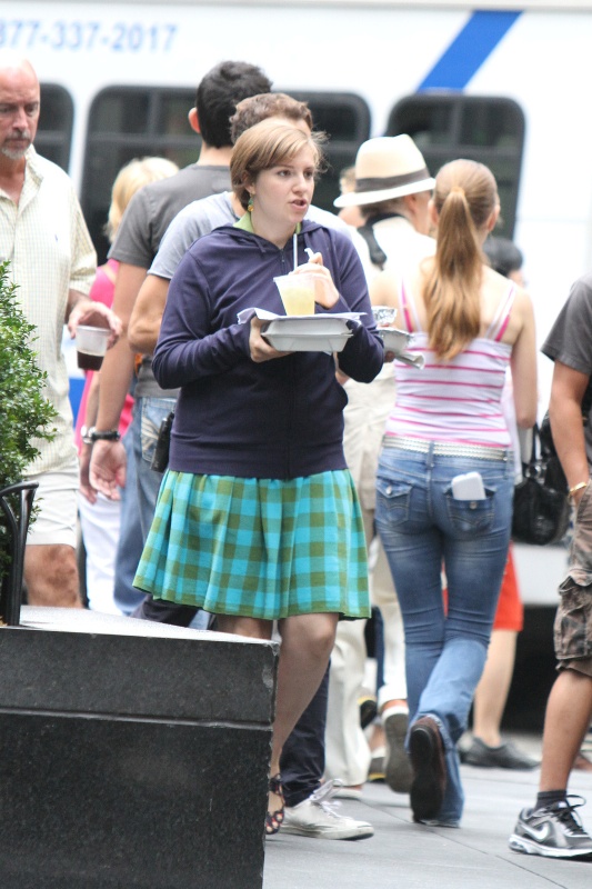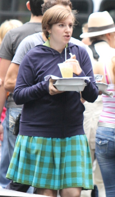 Also attached – Lena and Adam Driver on the set of Girls. See, look at that plaid skirt she’s wearing? That’s what I want to see! That’s what she actually wears, and it’s cute!