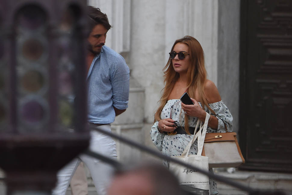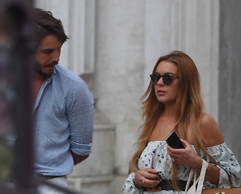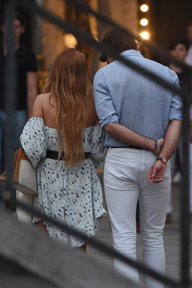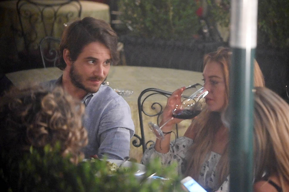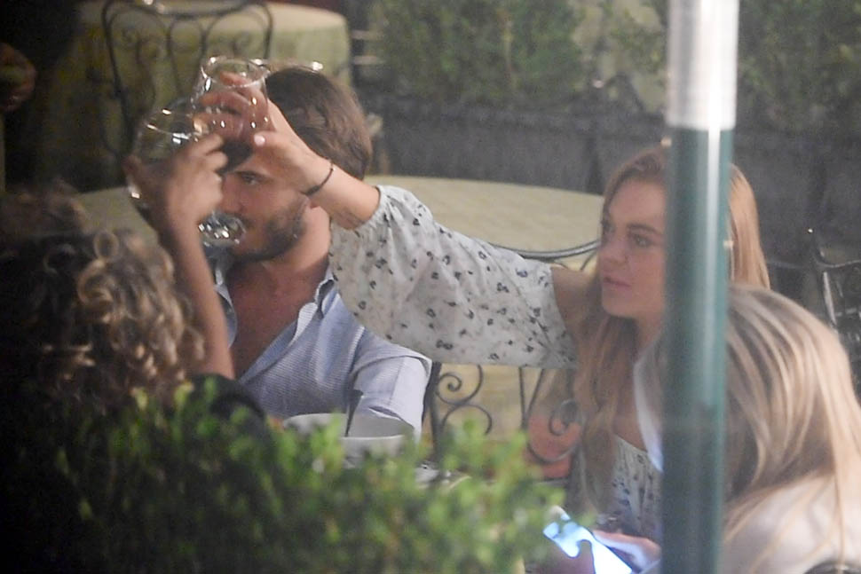 After “working so hard” to complete her community service Lindsay Lohan spent the weekend in Venice, Italy with Mathia Milani, supposedly her new boyfriend. Since there was something to celebrate, well, Lindsay never really needs an excuse, so they celebrated with a toast. And since she’s officially off probation, for the first time in 7 years, well… you can see for yourself what’s in that wine glass.