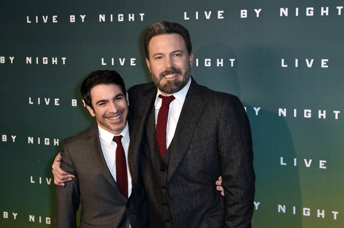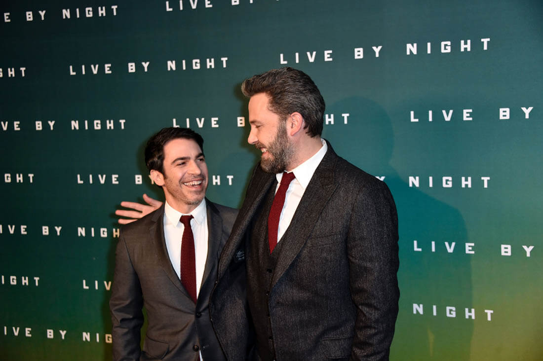 Attached - Ben Affleck at the Paris premiere of Live By Night with Chris Messina today.